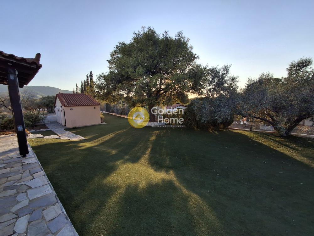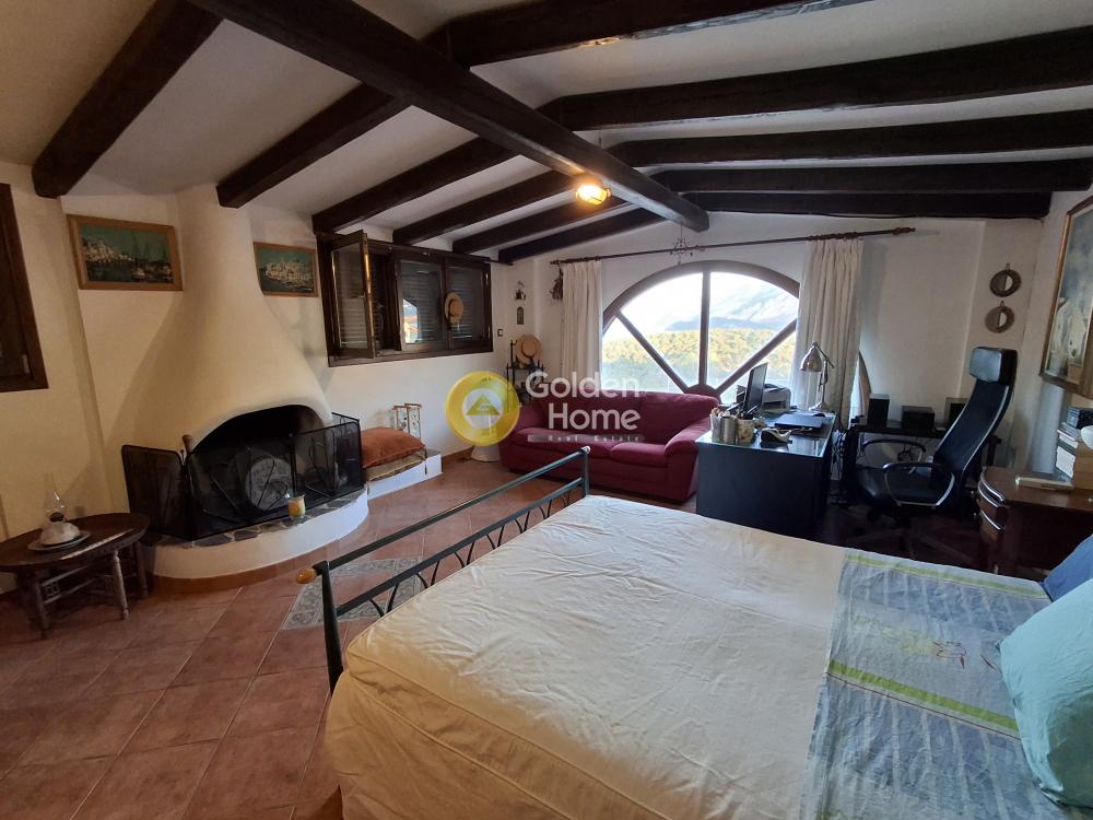 Excellent detached house in the area of Strava Loutraki. The main house is 150 sqm which has 4bedrooms, 2 bathrooms and a single living room - dining room - kitchen. It has a semi-basement of 40 sqm which has been configured into an independent living room with its own bathroom. It also has an independent guest house on the ground floor of 40 sq.m. Each area has autonomous heating with oil. The estate has 70 olive trees, an orchard, and an outdoor bbq. A huge garden with plants has been created on the plot from which you can at all hours enjoy the endless blue of the sea as well as the tranquility it exudes. It is planned to build a swimming pool which will be surrounded by bars and sunbeds from where you will also enjoy the endless blue.