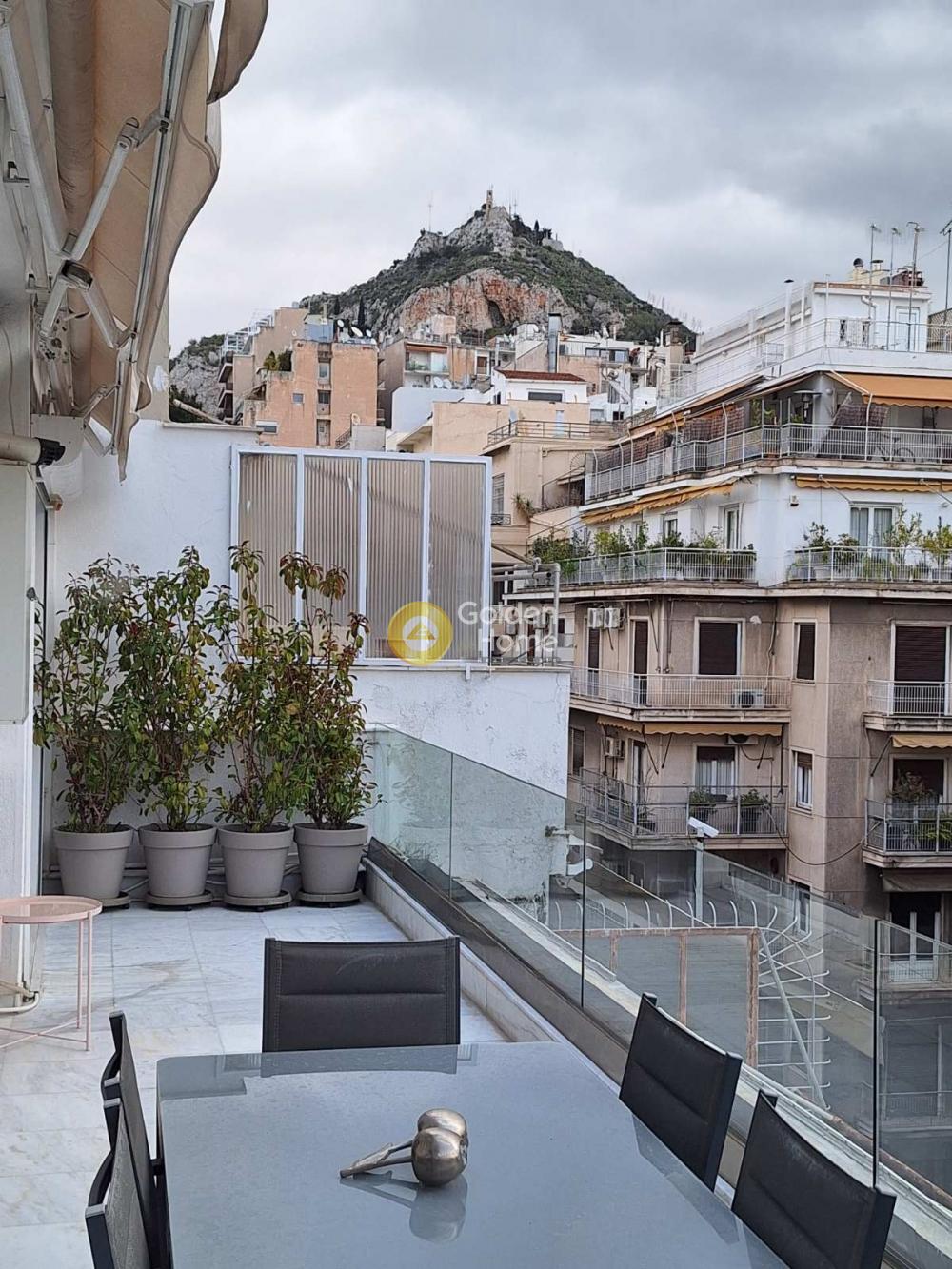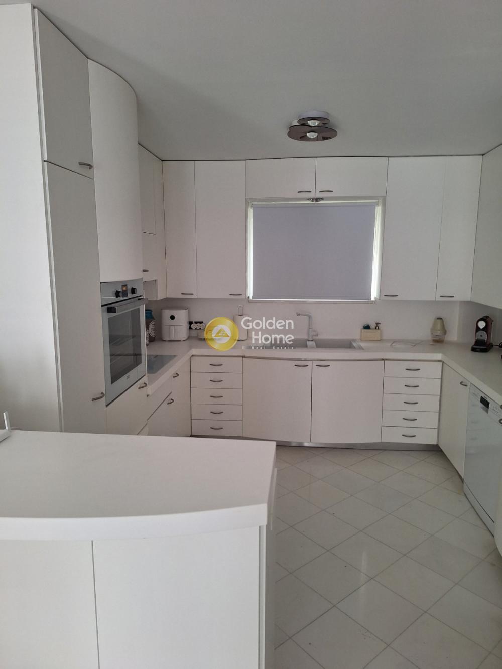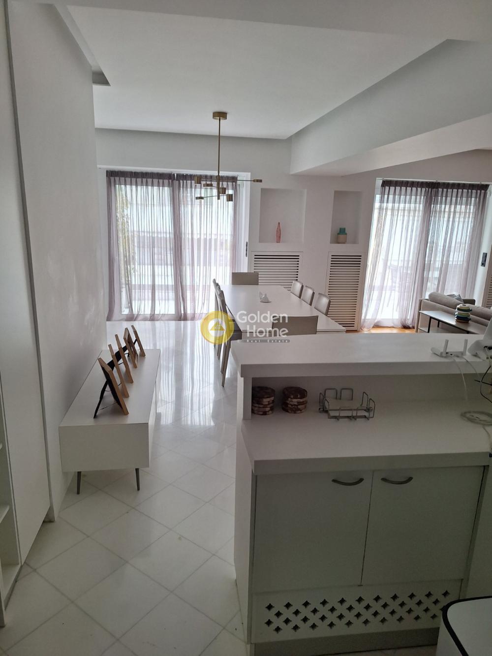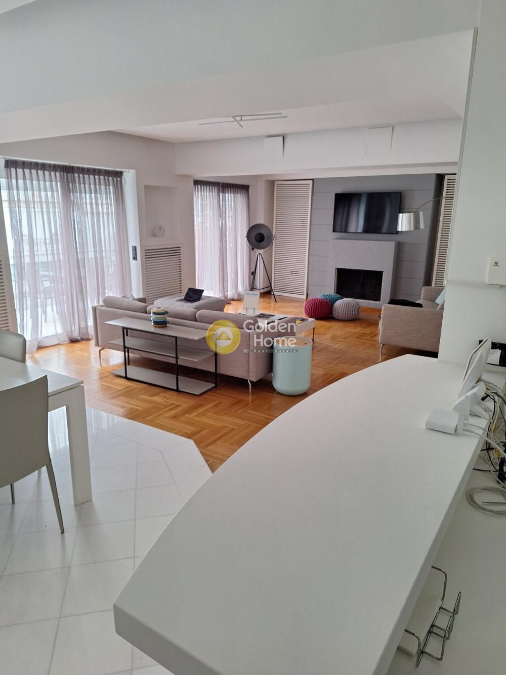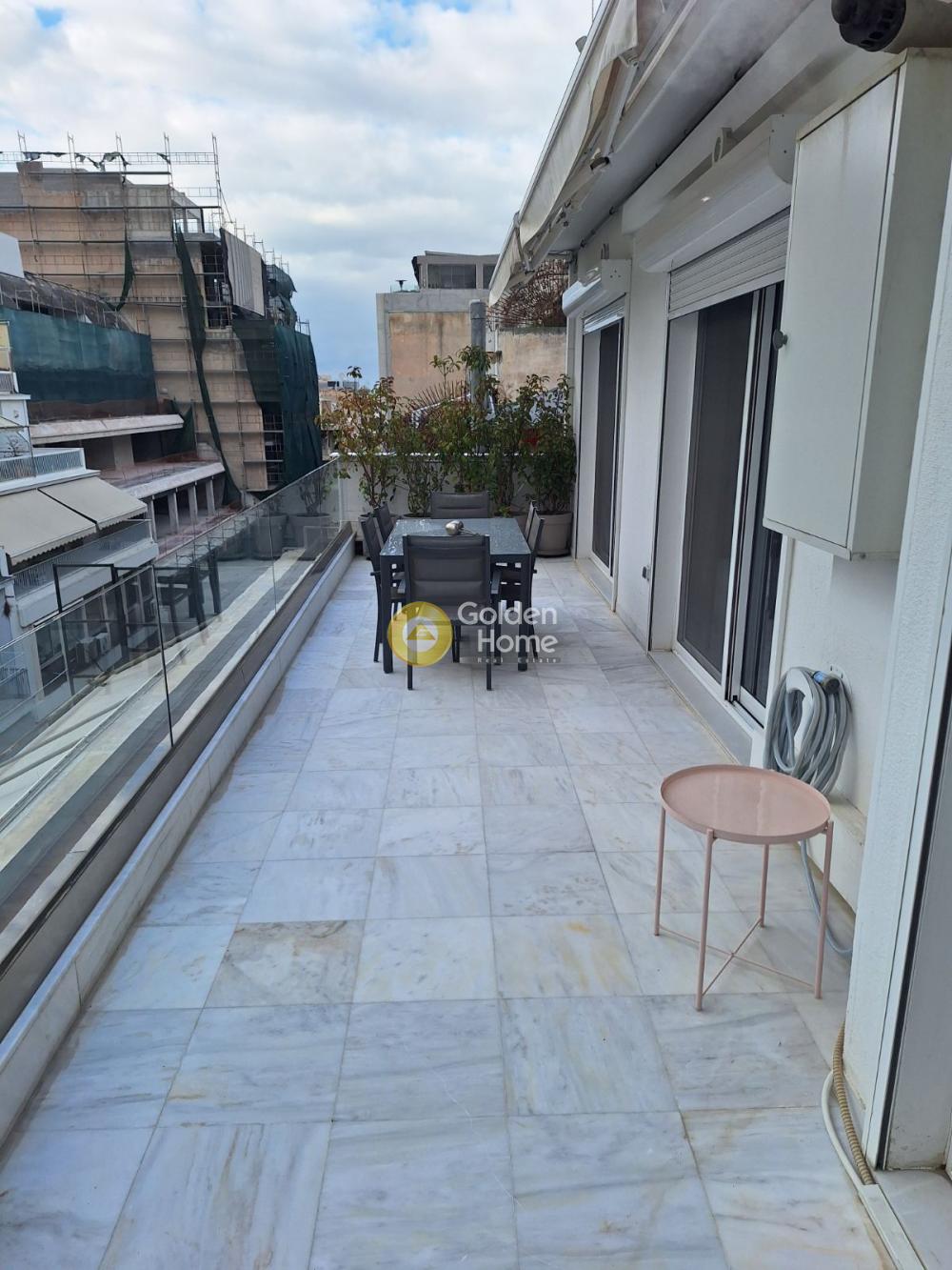 For sale: a fully renovated 135 sq.m. penthouse apartment on the 5th floor, with the possibility of direct access from the elevator. The apartment features a spacious bedroom with the potential to create a second one, as well as two WCs with a bath. The 25 sq.m. kitchen is adorned with Thassos marble, while the interior floors boast elegant herringbone wooden flooring, adding warmth and sophistication to the space. The expansive 25 sq.m. veranda, paved with Dionysus marble, is a perfect relaxation spot, featuring an automatic watering system for 11 plant pots on wheeled bases, including 9 photinias, 2 bougainvilleas, and 2 rose bushes, creating a unique natural ambiance. The apartment offers full autonomy in heating with natural gas, complemented by a cozy fireplace that enhances the sense of warmth and comfort. Additionally, it is equipped with three air conditioning units (2 Daikin), automatic awnings, and a security door, ensuring maximum convenience and safety. A storage room is also included, providing extra space for your needs. This is a unique high-aesthetic property, ideal for those seeking a refined and functional living environment. For more information or to schedule a viewing, please contact us.