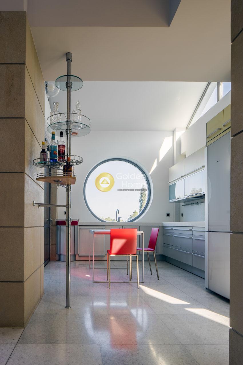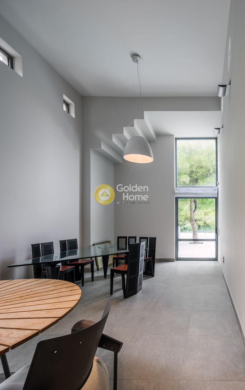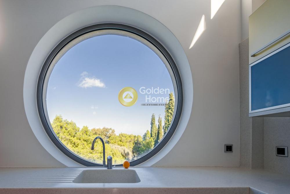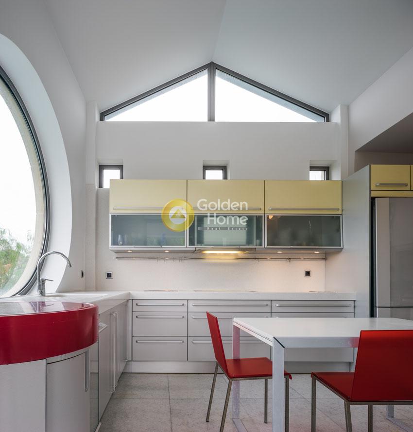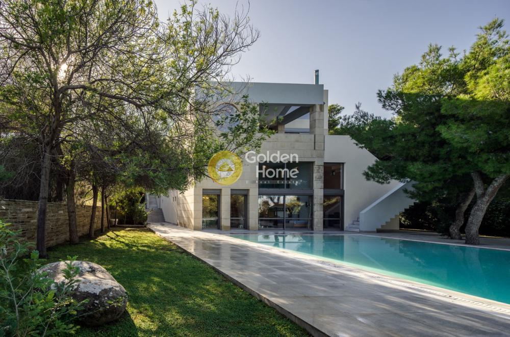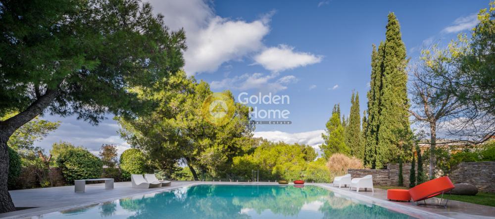 Elegant Luxury with Spectacular Views of the Evian Gulf in East Attica Featuring elaborate architectural design overlooking the azure shores of East Attica, this fabulous two-level villa in the Polytechnic settlement of Chamolia embodies the ultimate blend of luxurious comfort and minimalist aesthetics. Originally chosen by the National Technical University of Athens as an ideal location for summer residences, this area offers an enviable vantage point overlooking the scenic eastern coast, nestled on a pine-covered slope. This exceptional 345 sq.m. residence, located between Vravrona and Agios Spyridon, was envisioned at the turn of the millennium by a young architect couple—the attentive owners—who meticulously designed an ultra-modern luxury home perfect for sophisticated families, close friends, or design aficionados. Set on a steep hillside, this property delivers panoramic sea views, with both levels acting as ground floors on different sides of the building, showcasing a distinctive postmodern architectural influence. Surrounded by a protected forest area, the residence offers complete tranquility and privacy. Painstakingly restored to its postmodern architectural essence, this home showcases clear, elegant lines and a clean aesthetic, while offering exquisitely designed and restful interiors that emphasize both comfort and beauty. The residence includes a total of two living rooms, five bedrooms, five bathrooms, and a central air conditioning system with seven units. Thoughtfully crafted for ultimate luxury, the property harmonizes with the natural environment, offering underfloor heating in all living spaces, while the entire building is covered externally either by Cyprus marble or by impenetrable plaster, which is used in external thermal insulation systems. On the entry-level floor, which covers 117 sq.m., a high-ceilinged living room fills with natural light through tall windows, while expansive balconies provide sweeping sea views. The open-plan kitchen, featuring an impressive circular window overlooking the beautiful South Evian Gulf, flows effortlessly into the living room. This level also includes a master bedroom with its bathroom and potential for a 23 sq.m. loft, within building allowances, which could serve as an office or library. Adjacent to the main house and next to the building’s electrical supply, there is an 8 sq.m. generator chamber, ensuring dependable backup power. A modern staircase leads to the mezzanine level, where there is a guest bathroom and an office space, with the option, within building allowances, to expand this area into a lofted space of 16 sq.m., overlooking the lower living area. The garden and pool level spans 198 sq.m. and includes a second lounge/living area, a striking master bedroom with an en-suite bathroom, two additional bedrooms with a shared bathroom, a laundry room, and a linen storage area. This level opens directly to a 99 sq.m. infinity pool (7.85m x 12.54m) and an expansive, sea-facing yard that offers absolute privacy and relaxation. A private guest suite with en-suite bathroom, its own entrance and independent underfloor heating plus air conditioning cooling is also located on this level. A dedicated area serves as a storage room, boiler room, and lift machinery chamber. Harmonizing with its surroundings, the property’s exterior seamlessly blends with the lush, protected forest area, offering an exclusive retreat for those who seek luxury, nature, and inspiring coastal views in East Attica. This spectacular villa invites you to experience its breathtaking views and relax in the lap of luxury at this exclusive hideaway—ideal as both a family residence or a sophisticated holiday home for international buyers looking for a peaceful yet accessible coastal sanctuary near Athens.