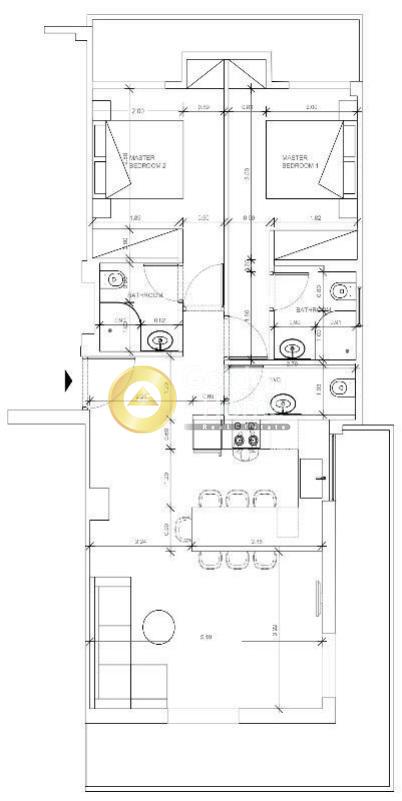 Fully and luxuriously renovated corner first-floor apartment, with 2 master bedrooms and a WC. Built-in kitchen appliances included. It has large balconies at the front and back.