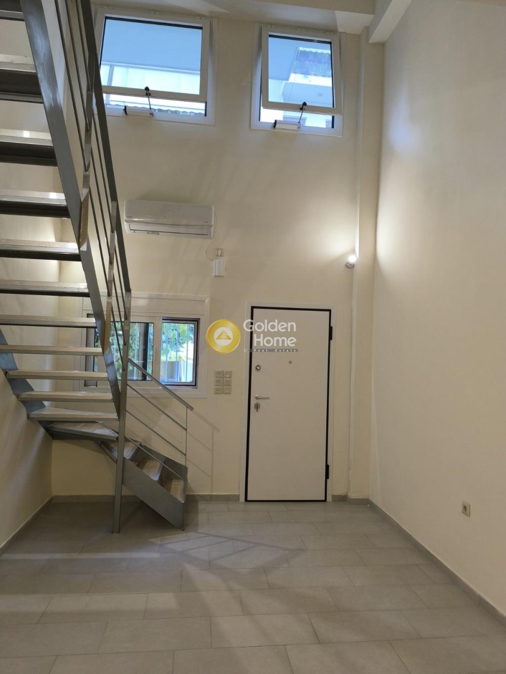 Renovated loft-type apartment 48 sq.m. airy, with a single living room with kitchen and wc, a master bedroom with bathroom and additional internal underground storage of 18 sq.m. Energy efficient aluminum frames with screens, security door and air conditioning. In an extremely central location, next to a super market and transportation (very close to Katehaki Metro and buses), next to L. Mesogeion, Kifisia and Katehaki