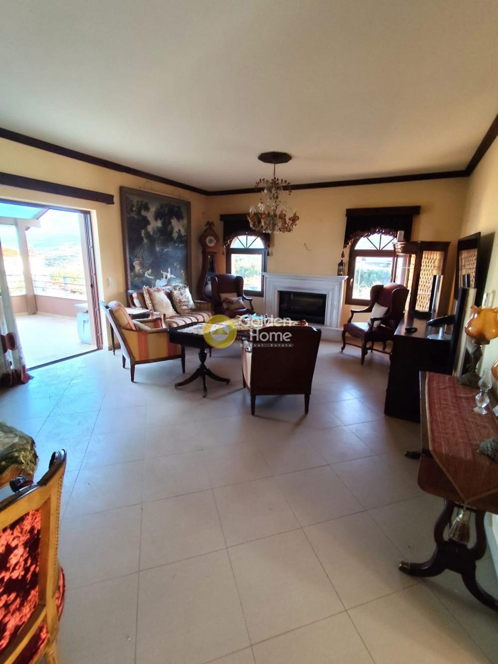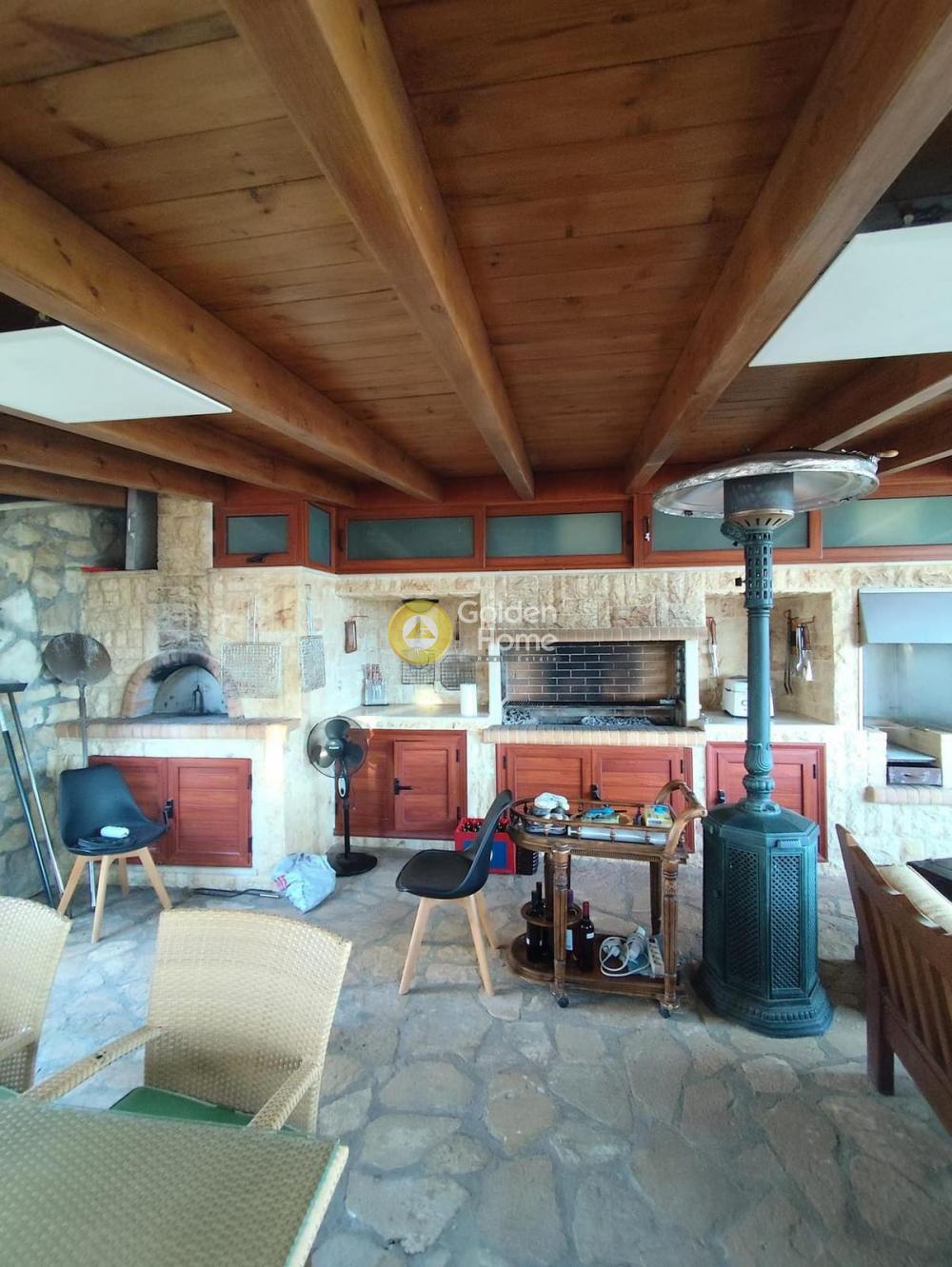 Beautiful villa of 300m2, available for sale in Tria Monastiria, Rethymno, two levels, ground floor and semi-basement with elevator. It includes two independent residences, one of which has a master bedroom with a large wardrobe - room and a separate room for shoes, bathroom, a modern kitchen with window and terrace, a WC, large dining rooms and living rooms with two fireplaces and windows with beautiful views and direct access to the garden. The other residence has a bedroom, a bathroom and a large open kitchen with living room. This is an excellently built villa furnished with taste and expensive furniture, aluminum frames with double glazing and screens, underfloor heating, air conditioning in all areas, solar water heater, verandas and balconies with incredible sea view. It is located within a 1700m2 plot fenced with stone fencing. In the garden you will find a closed parking space, a separate room for the staff, a laundry room, storage rooms and a fully equipped barbeque that is ideal for moments of fun and relaxation with your family and friends. It is just 5 minutes from the center of Rethymno.