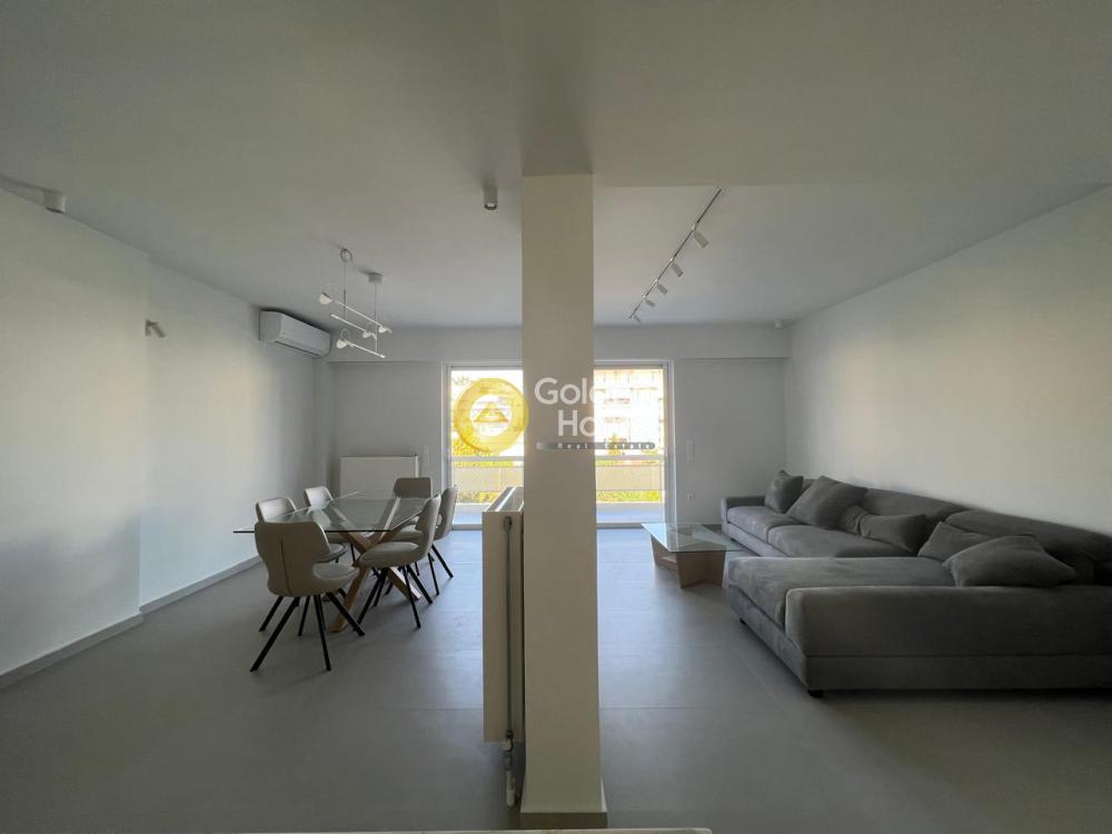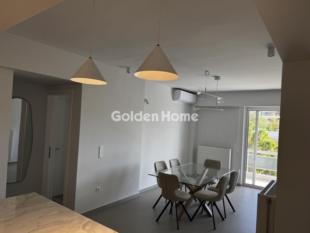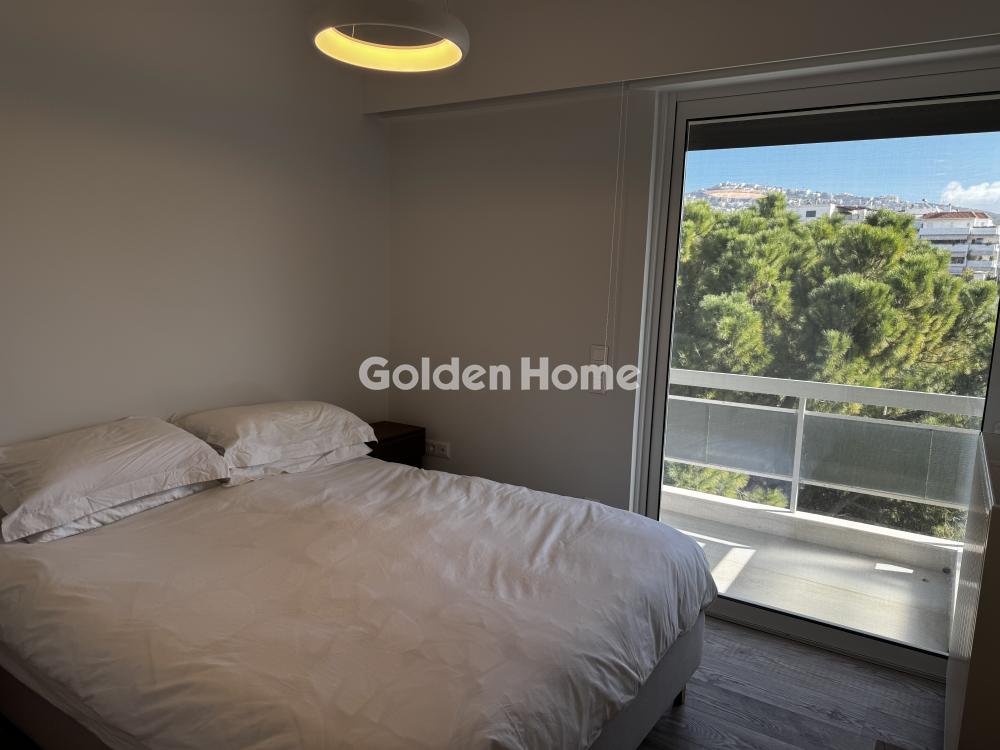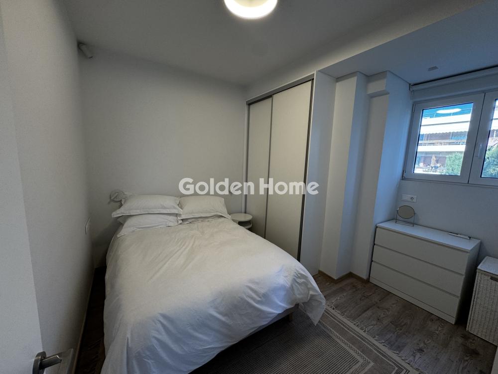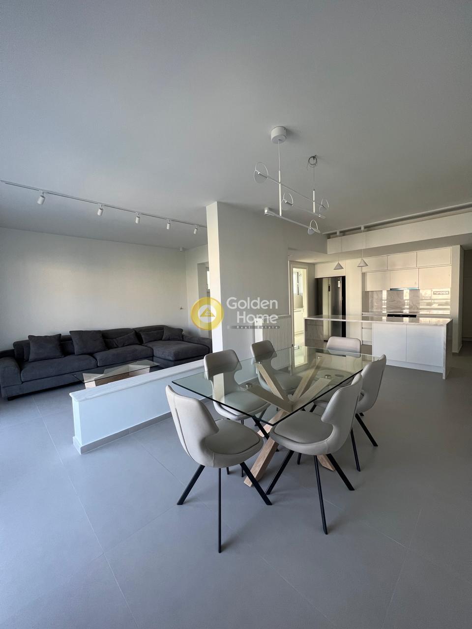 For rent: A stunning, fully renovated 2024 and furnished 105 sq.m. apartment on the 3rd floor in center Glyfada, featuring two bedrooms, two modern bathrooms, a bright open-plan living and dining area with a large corner sofa, dining table, and autonomous heating. It includes aluminum window frames with screens, a security door, an alarm system, and state-of-the-art air conditioning in all rooms. Located in a quiet neighborhood, just 500m from the beach, two minutes from a supermarket, hair salon, delicatessen, and bus stop, while the tram stop and Esperidon Square are a 10-minute walk away. Ideal for families, small pets are welcome. available from 1.04.2026