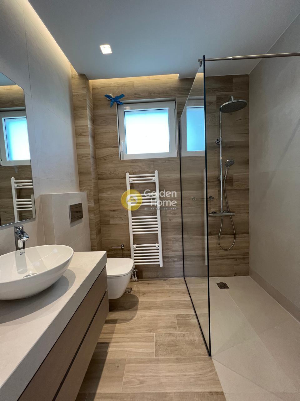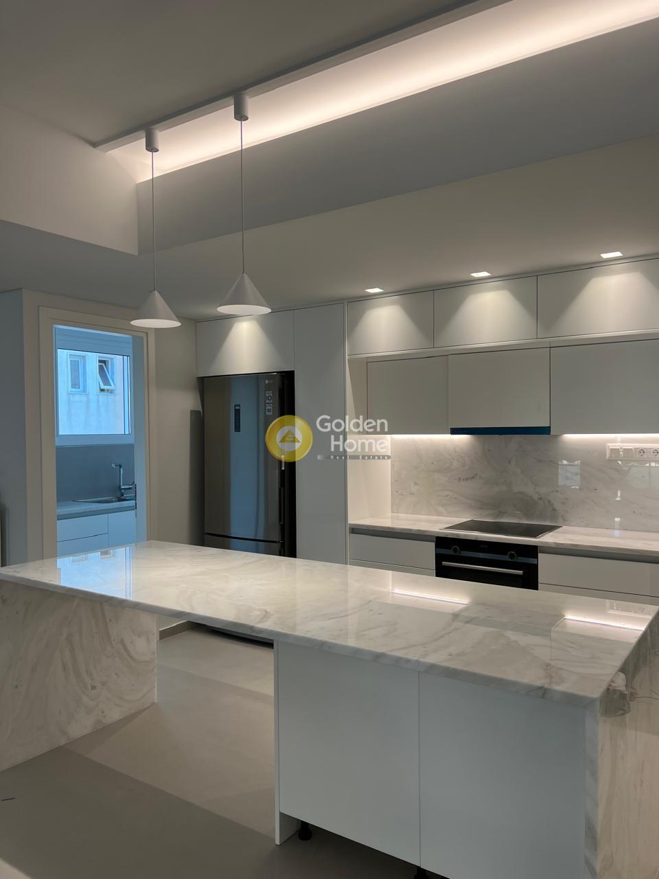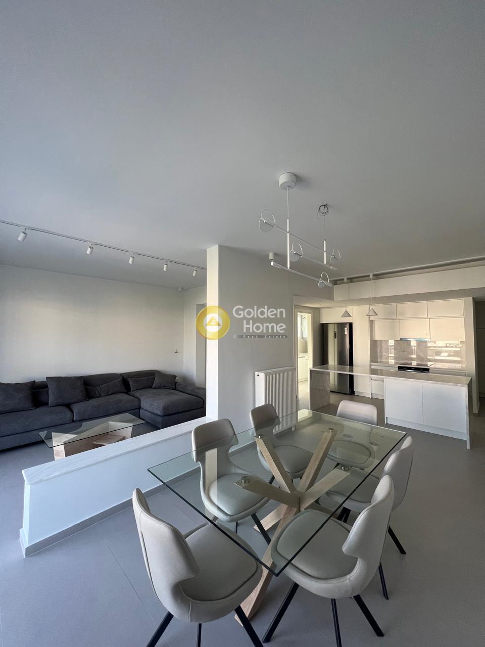 For rent: A stunning, fully renovated 2024 and furnished 105 sq.m. apartment on the 3rd floor in center Glyfada, featuring two bedrooms, two modern bathrooms, a bright open-plan living and dining area with a large corner sofa, dining table, and autonomous heating. It includes aluminum window frames with screens, a security door, an alarm system, and state-of-the-art air conditioning in all rooms. Located in a quiet neighborhood, just 500m from the beach, two minutes from a supermarket, hair salon, delicatessen, and bus stop, while the tram stop and Esperidon Square are a 10-minute walk away. Ideal for families, small pets are welcome. available from 1.04.2026