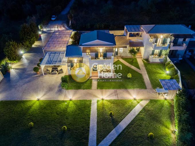 The luxurious Liostasi villa is located in an excellent location, just 400 meters from the beautiful Kanouli-Stalakto beach, harmoniously combining tranquility with modern luxury. The property extends over a spacious plot of 4,300 sq m, offering three fully independent stone houses with modern amenities and stunning views. Guests can enjoy the view of the imposing mountain of Pantokrator Agios Mattheos and the lush, well-kept gardens of the plot. The first residence is an 80 sq m maisonette, which includes a spacious living room with a fully equipped kitchen, two bedrooms, a bathroom and a WC, offering ideal comfort for families. The second residence, a 70 sq m maisonette, also has a living room and kitchen, two bedrooms, a bathroom and a WC. The third residence is a 40 sq m ground floor apartment. with a living room, kitchen, one bedroom and bathroom. All residences have air conditioning, spacious balconies with panoramic views, as well as access to the common facilities of the plot. Outside, the villa offers an impressive 90 sq.m. swimming pool for exclusive use, a fully equipped BBQ area, a children's playground and a beautifully landscaped 2,000 sq.m. garden with lawn, Leyland trees and ornamental plants. There is also parking for four cars, a WiFi network covering the entire property and security cameras with a recorder for absolute security. The villa has a solar water heater with a water tank and an automatic switching system in case of a water supply interruption, as well as an automatic watering system for the care of the garden and trees. Villa Liostasi is a unique opportunity, ideal for both personal use and investment in the tourism sector, offering comfort, security and a magnificent natural environment that will magnetize every visitor.