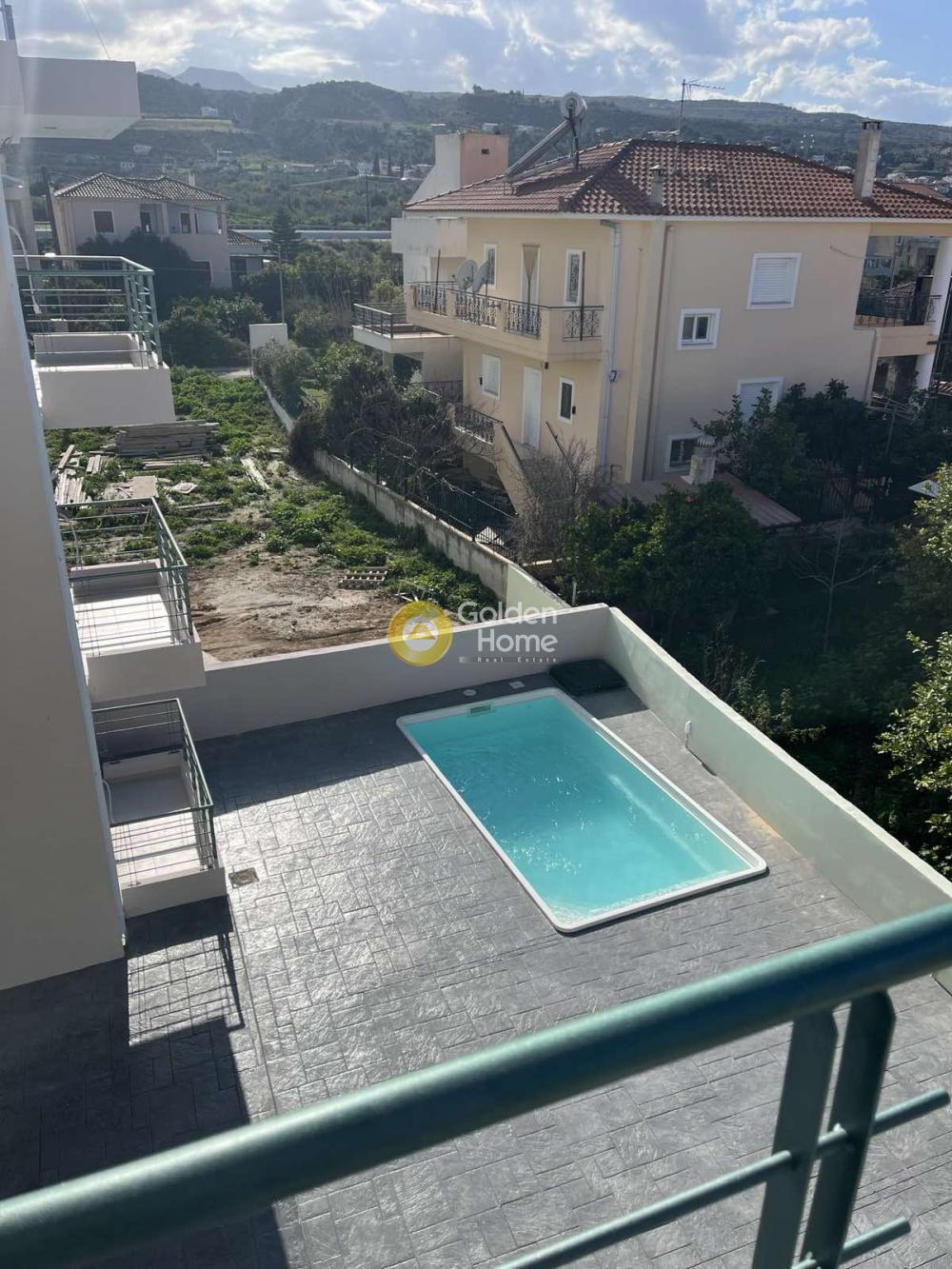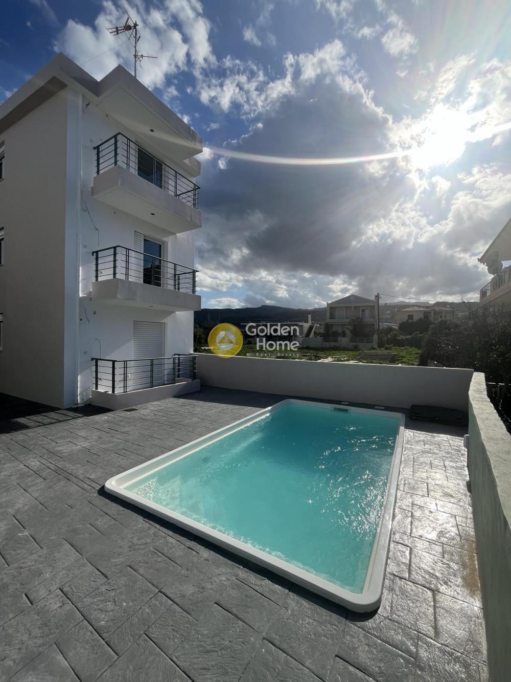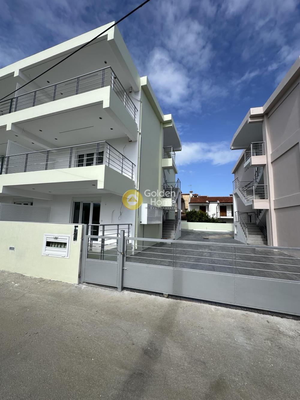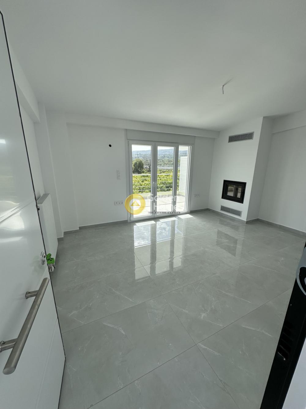 Apartment 70sqm plot size 500sqm, unfurnished, bedrooms 2, 1st floor, newly built, year built 2023, energy class A, living room, kitchen, bathroom, heating type: autonomous, heating medium oil, air condition, parking open space, quiet, dual aspect apartment, luminous, view unobstructed, frontage, electric roller shutters, storage space, storage space surface area 20, solar heater, fireplace, garden, garden size 350sqm, frames aluminum, double glazed windows, door screen, floor type ceramic tiles, without common charges, three phase electricity, secure door, alarm, video doorbell, luxurious, swimming pool, pets allowed, within city plan, residential zone, sea front, south-eastern orientation, access from asphalt. In a complex of 4 two-storey houses in the area of Sykia Xylokastro, a luxurious 1st floor apartment of 70 sqm with a shared swimming pool is for sale, located 250 meters from the beach, very close to schools, the market and public transport.
