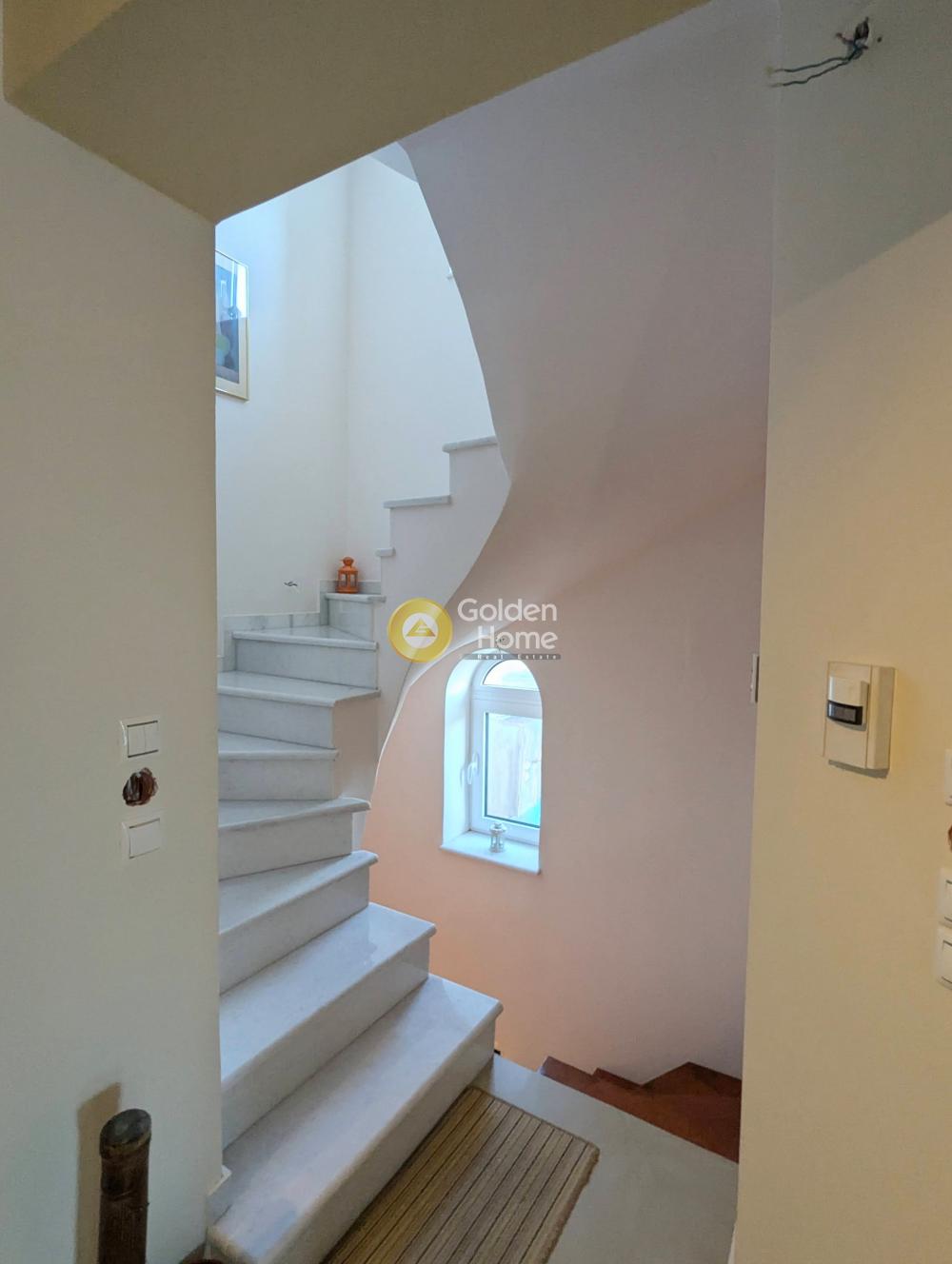 Detached house in very good condition, 600m. from the sea, with amazing views. It consists of a raised ground floor with living room, kitchen and WC, 1st floor with 3 bedrooms and bathroom, attic with unlimited sea views 28 sq.m. and a semi-basement with two bedrooms, living room, kitchen. The semi-basement can be converted into an independent apartment as it has its own entrance. It also has solar panels, a fireplace, aluminum frames with electric shutters, an alarm system, and an elevator pre-installation. The plot is bright and is located close to schools, a market and central roads.