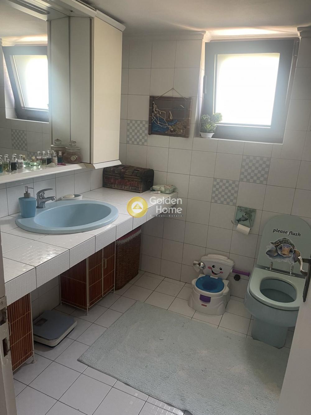 Excellent sunny and airy apartment, 134sqm, 2nd floor, from 1985 but renovated in energy class D and in excellent condition, with a large living room with a fireplace, an ergonomic kitchen integrated with the living room, 3 comfortable bedrooms, 1 bathroom, 1 ΅΅W/C, individual natural gas boiler, energy efficient aluminum double glazing with screens, parking and basement storage, in a green garden 800sqm, with a beautiful panoramic view due to a large height difference from the ground.
