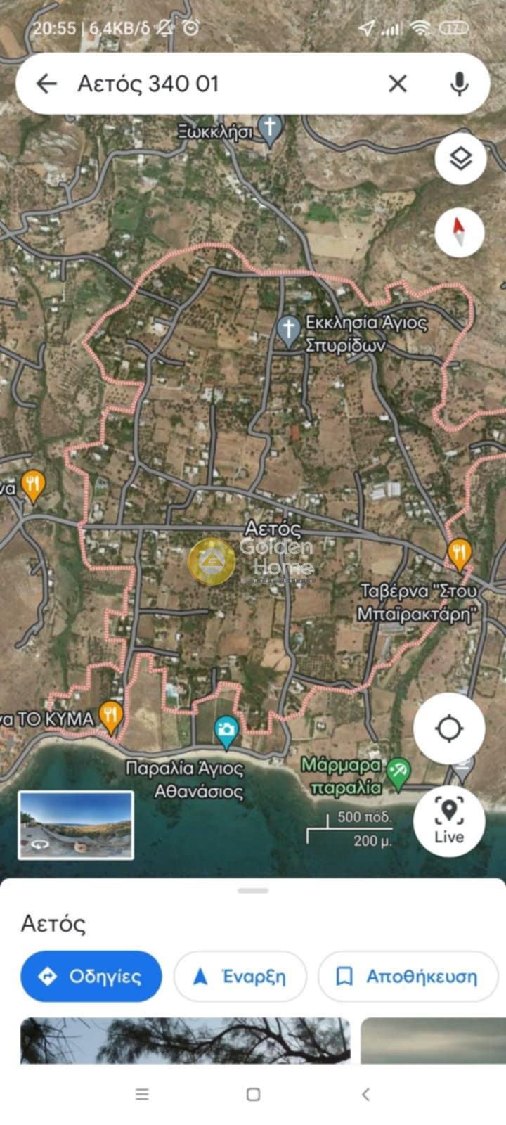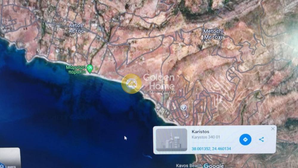 Plot of 500 square meters in the Aetos area in Karystos, within the plan, even and buildable. Builds 240 square meters and up to 2 floors high. It is only 250 meters from the sea