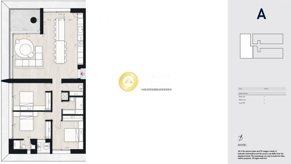 Highly aesthetic apartment, first floor, bright, in an excellent neighborhood of Voula, ground floor 116 sq.m to be delivered in 2026. The property has 3 bedrooms (two Master), 3 bathrooms, 1 parking space and storage. With ultra-modern architecture and innovative materials, such as a heat pump, infrastructure for electric cars, photovoltaic panels, aluminium frames with triple glazing and thermal break, fan-coil for heating/cooling, quality construction materials and certified high quality concrete. The site of the building is 200 meters from the sea, with lots of greenery, close to the market, schools, hospitals, sports grounds and close to public transport.