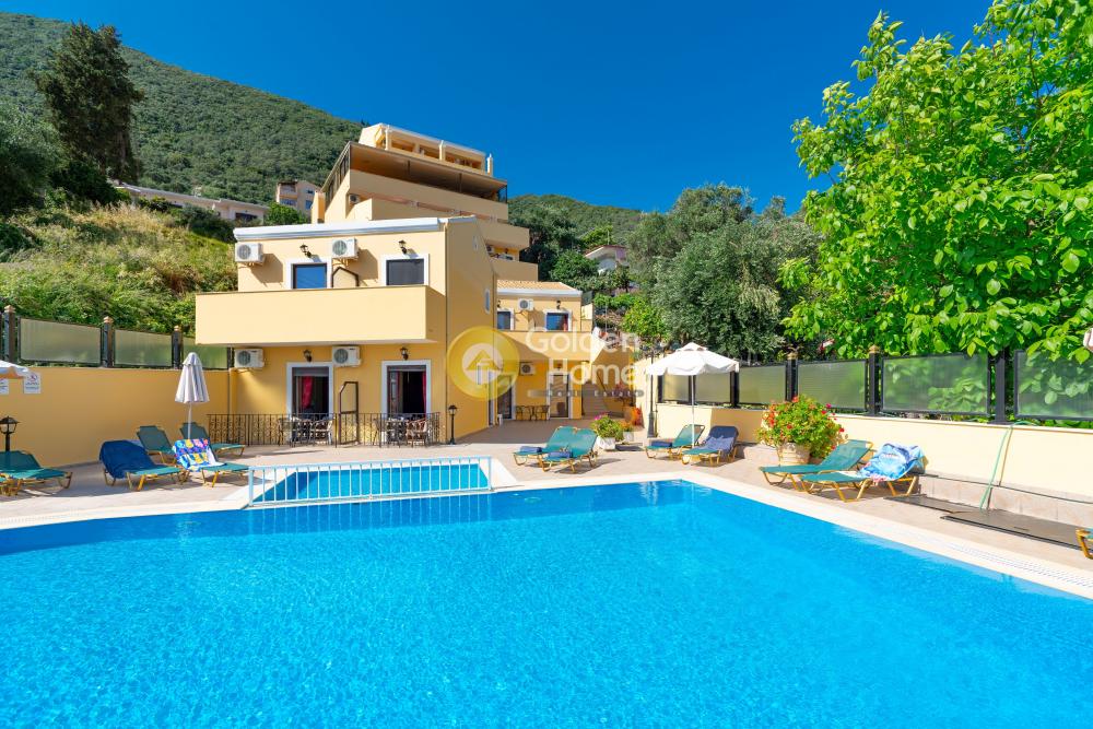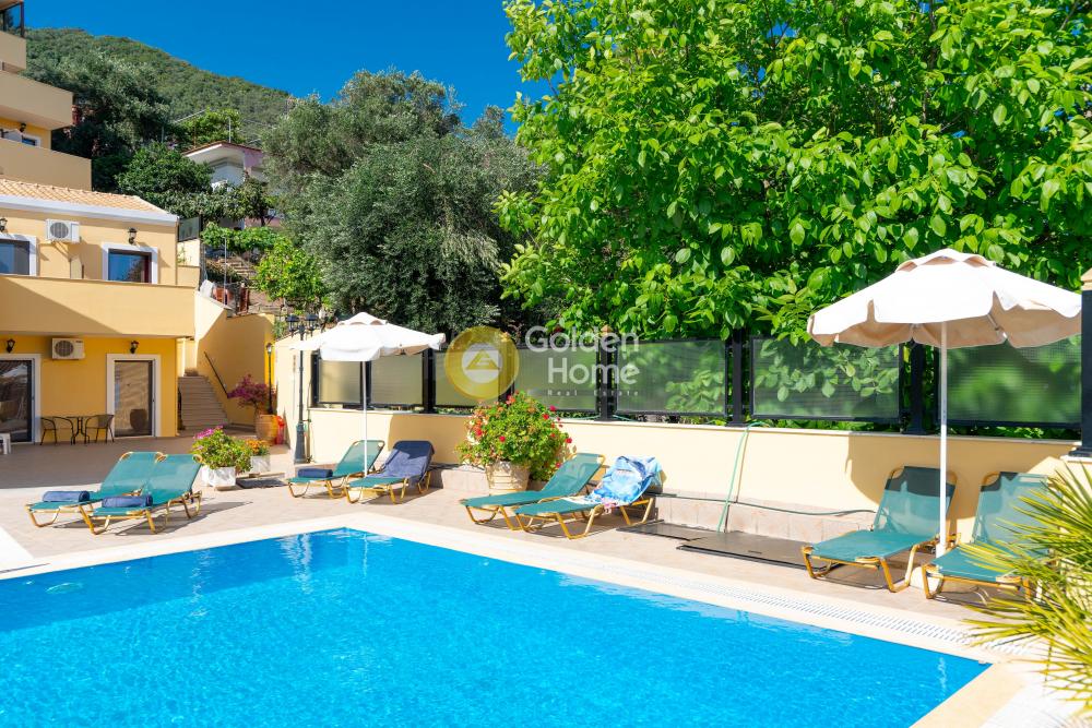 The unit is located in a lush green environment with large bright rooms where each has a spectacular view. The area is the most touristic on the island and combines peace for relaxation and fun. The unit is located 600 meters from the organized beach of Ipsos. The hotel is in excellent condition and its construction was made with luxury materials from well-known brands (GROHE, velvet living rooms, solid furniture, etc.). The unit is fully and legally licensed by the Hellenic Tourism Organization and carries all the safety and operation certificates in force (fire safety, technical hazard report, etc.).