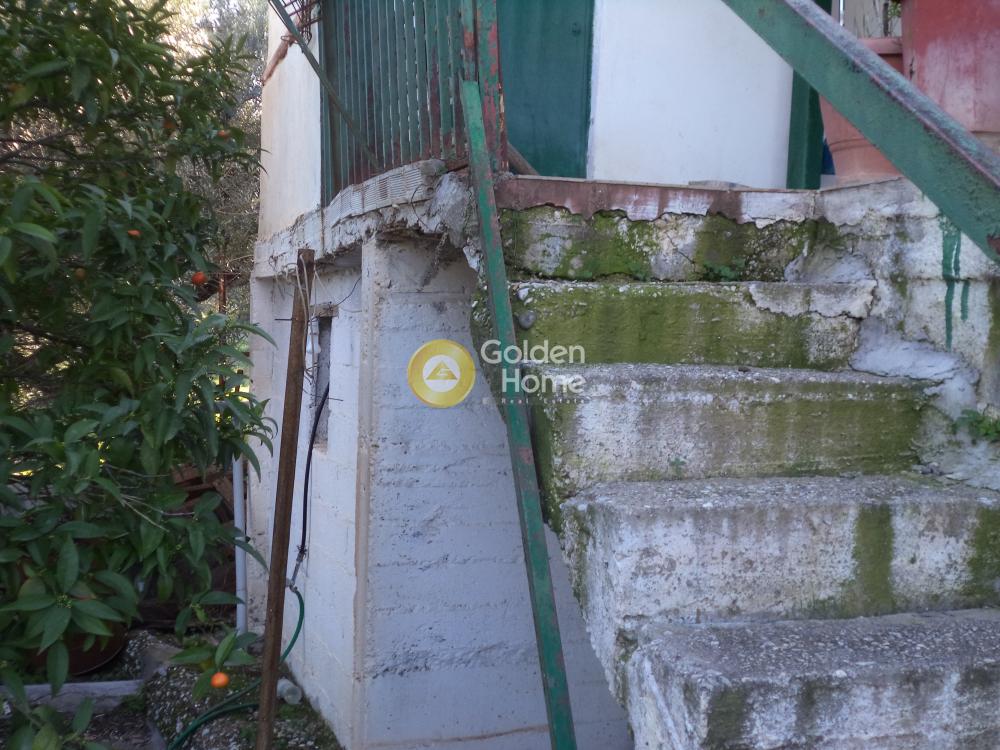 Residence in Agios Konstantinos, Aigialeia, 70 sq.m. on a 370 sq.m. plot, built in 1960, with an additional 40 sq.m. storage in the basement of the house. Spacious with many storage spaces, with oil radiators and no shared expenses. It has one bedroom, an independent kitchen, one bathroom, a dining room with a living area and a fireplace, terraces with awnings, and a parking space.