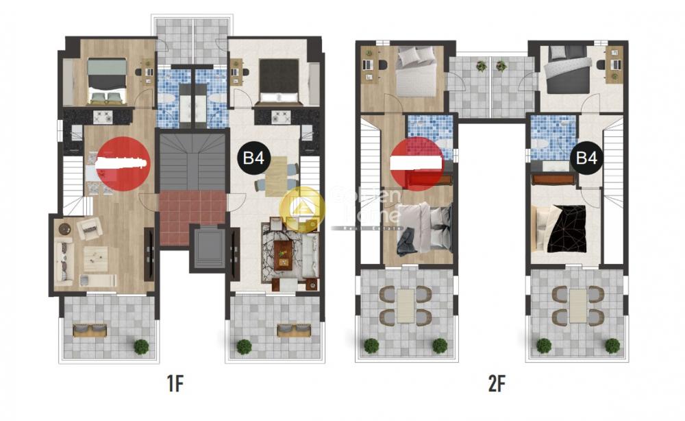 In a 12 floor mezonete complex, this 1F-2F maizonette with 3 bedrooms and all modern conditions is for sale. Construction will finish around summer of 2026. Nice and calm area near the market and private schools.