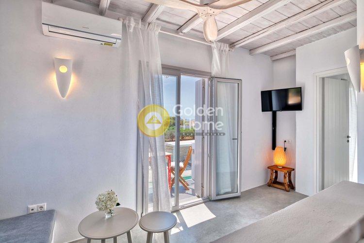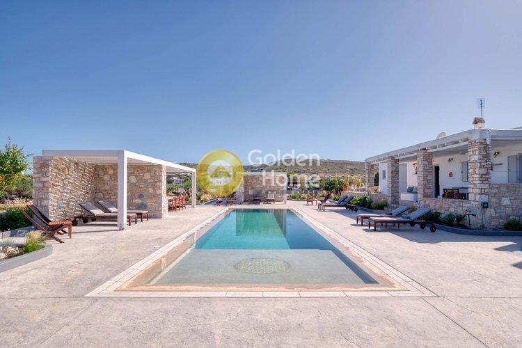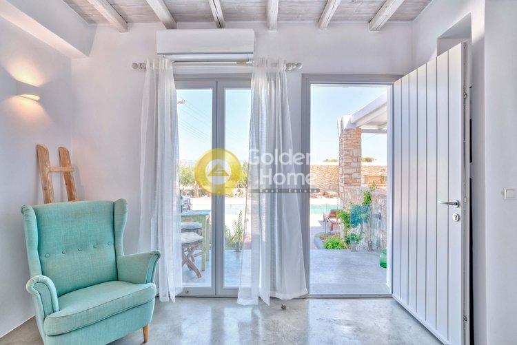AMBELAS PAROS. In the beautiful area of Ambelas in Paros, a unique complex of three residences offers the perfect balance between luxury and Cycladic tradition. The complex includes: • 120sqm residence: Ground floor, with 2 bedrooms, a master bedroom, bathroom, living room with kitchen, and fireplace for warmth and atmosphere. It also has individual heating. • 80sqm residence: Ground floor, with 2 master bedrooms, living room-kitchen, fully furnished and equipped. • 45sqm residence: On the 1st floor, with 1 master bedroom, living room-kitchen and magnificent sea views. Additional spaces include: • Kitchen and bathroom 12sqm to serve the pool • Storage rooms 3sqm and 4sqm • 100sqm remaining construction plus basement • 60sqm swimming pool with sea water • BBQ area with kitchen, living room and showers • 6 parking spaces • Two water tanks (50sqm each) and a well The complex embraces nature with well-kept outdoor areas, shady pergolas, hammocks and aromatic plants. Guests enjoy privacy, while being just a few minutes from beaches, taverns and cosmopolitan Naoussa. With a modern Cycladic aesthetic, this complex is the ideal investment for families, friends or as a high-standard tourist accommodation. A true haven of comfort and luxury, promising unforgettable moments in the Aegean light.