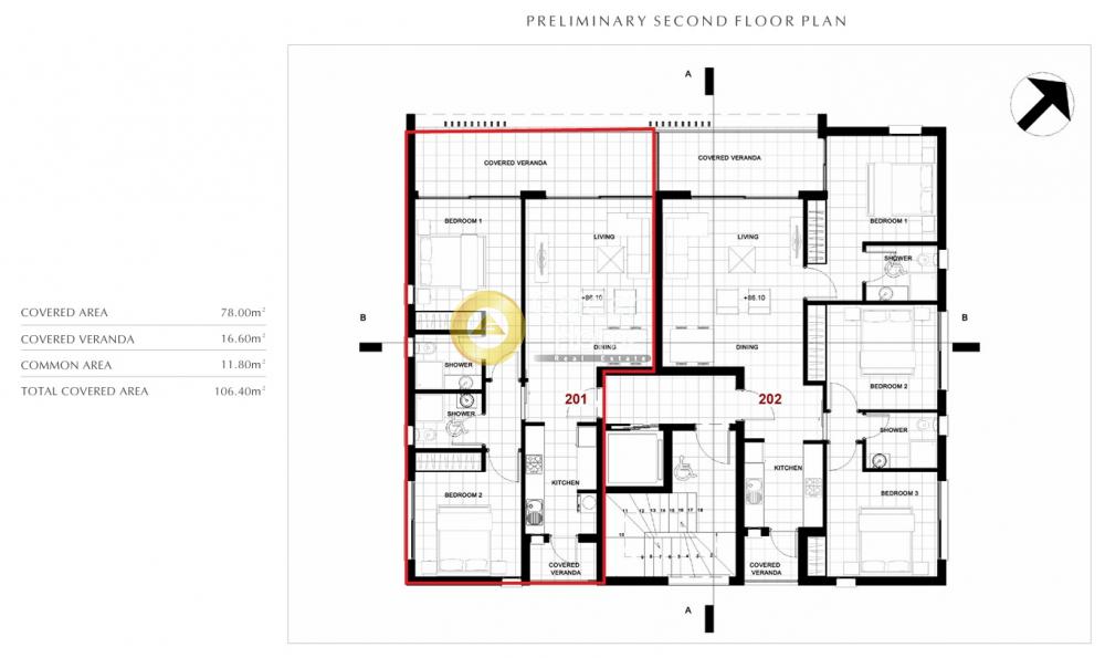 78m2 Covered area / 16,60m2 Cov. veranda / 11,80m2 Common area / 106,40m2 Total cov. area LOCATION : Geroskipou, Paphos / On the outskirts of Paphos Town / Central location / Easy access to all amenities, facilities and services / Close to schools, blue flag-awarded beaches, resorts, golf courses, places of interest, tourist atractions and the Paphos Harbour and promenade DESCRIPTION : The residences are of exceptional aesthetic design and consist of spacious apartments with large balconies, terraces and covered parking. These properties are set in a quiet convenient location and only few minutes’ drive from Paphos Town Center and the shops, Iasis hospital, the Neapolis University of Paphos and just ten minutes’ drive to Paphos International Airport. Ideal as a permanent residence offering 2 and 3 bedroom luxury apartments and integrated features such as, private and public gardens, covered parking and a lift.