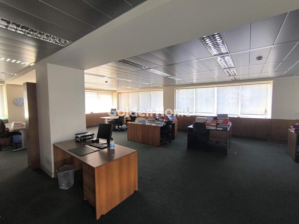 Office space, 600 sq.m., 15 parking spaces, in a key location, on the 1st floor, dual-aspect, frontage, air conditioning, ventilation, structured cabling, fiber optics, generator, fire detection system, fully equipped, internal staircase, unloading ramp, elevator, aluminum frames, suspended ceiling, alarm system, and wheelchair-accessible ramp. Built in 2006.