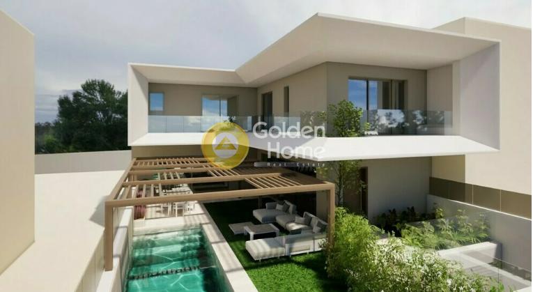 Modern 408 sq.m. villa under construction in Vari, featuring minimal architecture and high-end specifications. Spread across three levels (semi-basement, ground floor, first floor), it offers 5 spacious bedrooms, including 2 master suites with en-suite bathrooms. The outdoor area includes a private swimming pool, perfect for relaxing or entertaining. Located in a quiet residential area with easy access to schools, local market, and beaches.