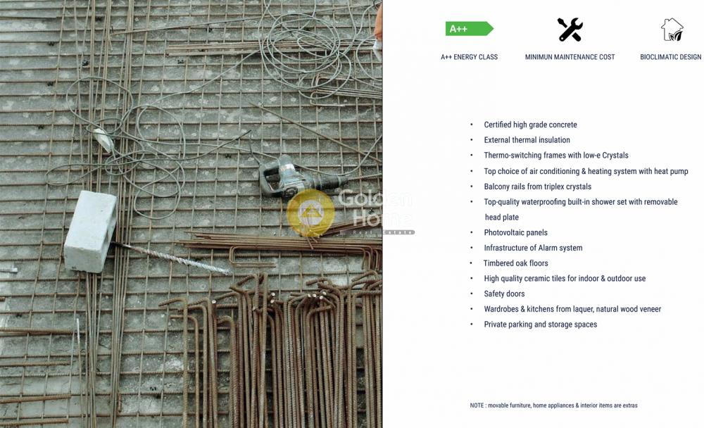 APARTMENT A2 - Live the dream of the Athenian Riviera in this exceptional, under-construction apartment of the luxurious project. It is located on the 1st floor of a building of contemporary aesthetics, in one of the most sought-after neighborhoods of Vari, offering an ideal combination of modern design, top energy efficiency and direct access to the magnificent sea (just 1.5 km) and to all the modern amenities offered by the area, from branded shops to excellent gastronomic options. It features 87 sq m. of interior spaces with a smart layout that maximizes functionality and abundant natural light, including 2 spacious bedrooms, ideal for relaxation, and 2 bathrooms with contemporary design and quality, branded materials. The comfortable balcony of 21 sq m. invites you to enjoy the sun, fresh air and the view of the well-kept urban landscape. In addition, for your ultimate convenience, 1 private parking space (Code ΘΣ11) as well as 1 private storage room (Code ΑΠ1) in the basement are provided. Designed with comfort and sustainable economy in mind, the apartment has a top Energy Class A++ and innovative bioclimatic design, guarantees for low cost of living and minimal environmental footprint. Enjoy ideal winter-summer temperatures thanks to the excellent external thermal insulation of the entire building, the energy-efficient aluminum frames with low-e glass that prevent energy loss, the latest generation autonomous heat pump for economical cooling/heating and the photovoltaic panels that cover part of the energy needs. The quality of construction is evident in every detail: durable and elegant oak floors, a sturdy security door, complete infrastructure for the installation of an alarm system, luxurious wardrobes and a functional kitchen (lacquer/veneer), modern triplex glass railings on the balconies and meticulous waterproofing to protect against moisture. A unique opportunity to acquire a modern, quality home in the heart of Vari, ready to offer you the quality of life you have always dreamed of, in an environment that combines tranquility with easy access to all points of interest.