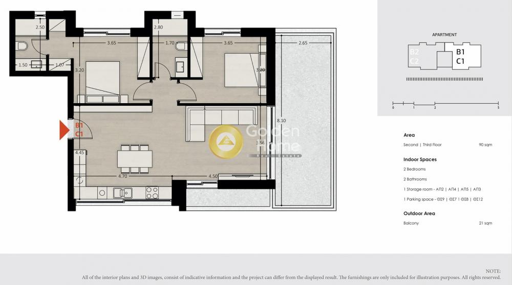 APARTMENT C1 - Acquire this elegant, under-construction apartment that dominates the 3rd floor of the luxurious project. Its privileged location in the heart of Vari, an area synonymous with the quality of life near the sea, combined with the top quality of construction and A++ energy efficiency, make it an excellent choice for modern, quality living. The interior spaces cover 90 sq m. with impeccable layout, offering 2 comfortable and particularly bright bedrooms and 2 full, modern bathrooms with branded sanitary ware. The large 25 sq m balcony, accessible from the living room and the kitchen, offers open views of the cityscape and ample space for relaxation or social gatherings. Everyday comfort is complemented by 1 private parking space (Code ΘΣ8) and 1 valuable private storage room (Code ΑΠ5) in the basement. Experience the comfort and impressive economy of the top Energy Class A++ and the smart bioclimatic design that minimizes energy requirements. The building features comprehensive external thermal insulation (thermal facade), state-of-the-art energy-efficient aluminum frames with thermal breaks and low-e glass for perfect insulation, an autonomous cooling/heating system with heat pump and photovoltaic panels for electricity generation. Aesthetics and quality are evident in the durable oak floors covering the main areas, the armored security door with a new type of lock, the pre-installed alarm infrastructure, the elegant and functional wardrobes and kitchen (lacquer/veneer) of Italian design and the modern triplex glass balcony railings that combine security and view. Live quality in one of the best spots on the Athenian Riviera, enjoying a home that combines luxury with functionality, safety and sustainability, within close proximity to beaches, marinas and the cosmopolitan life of the Southern Suburbs.