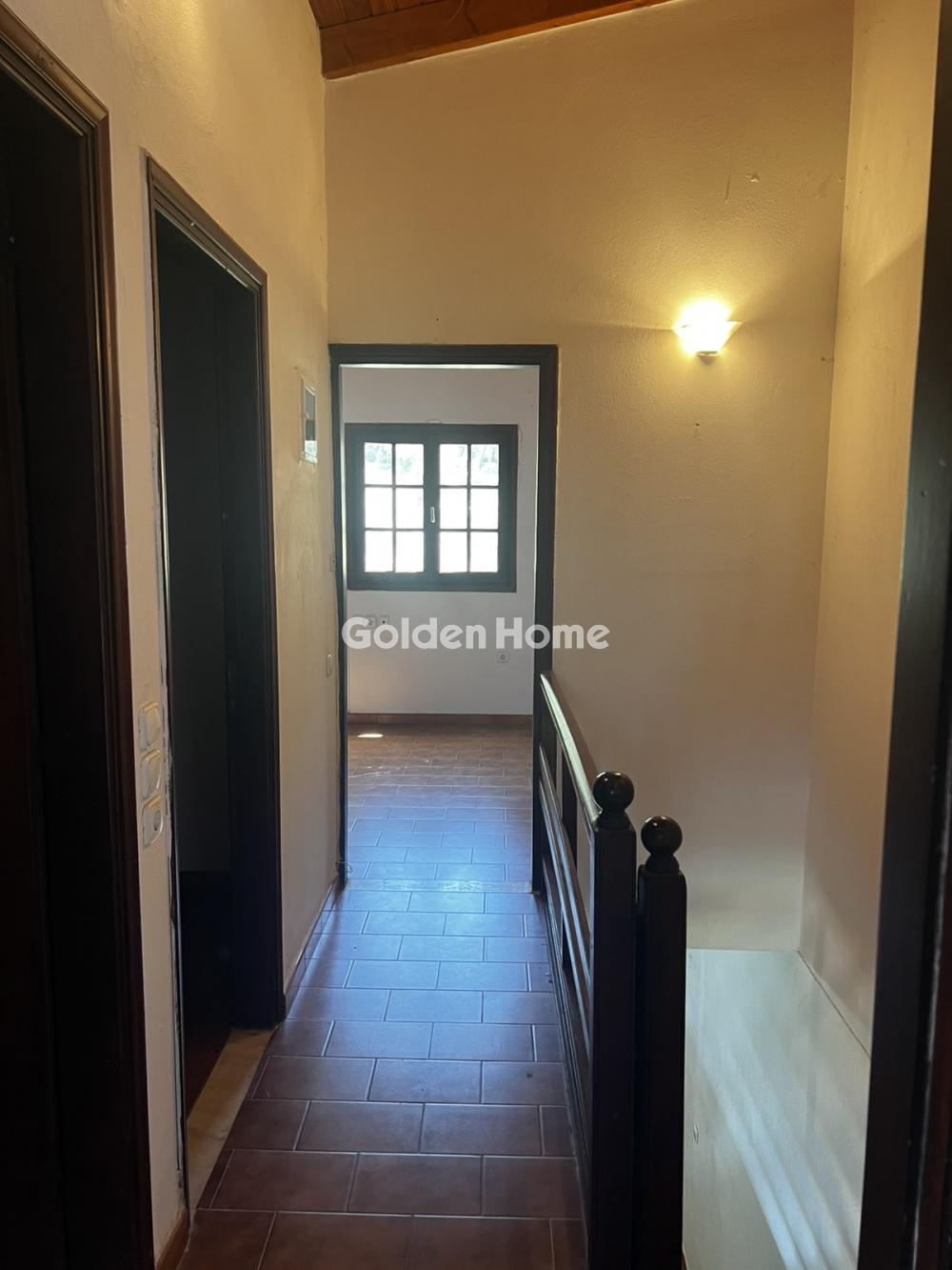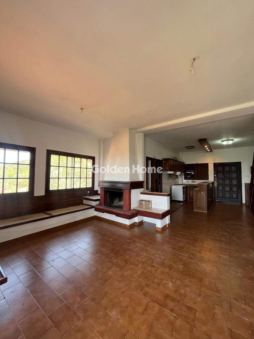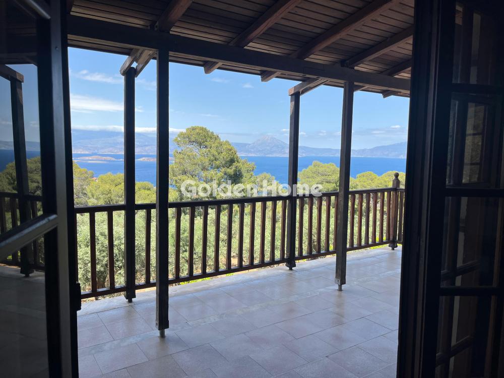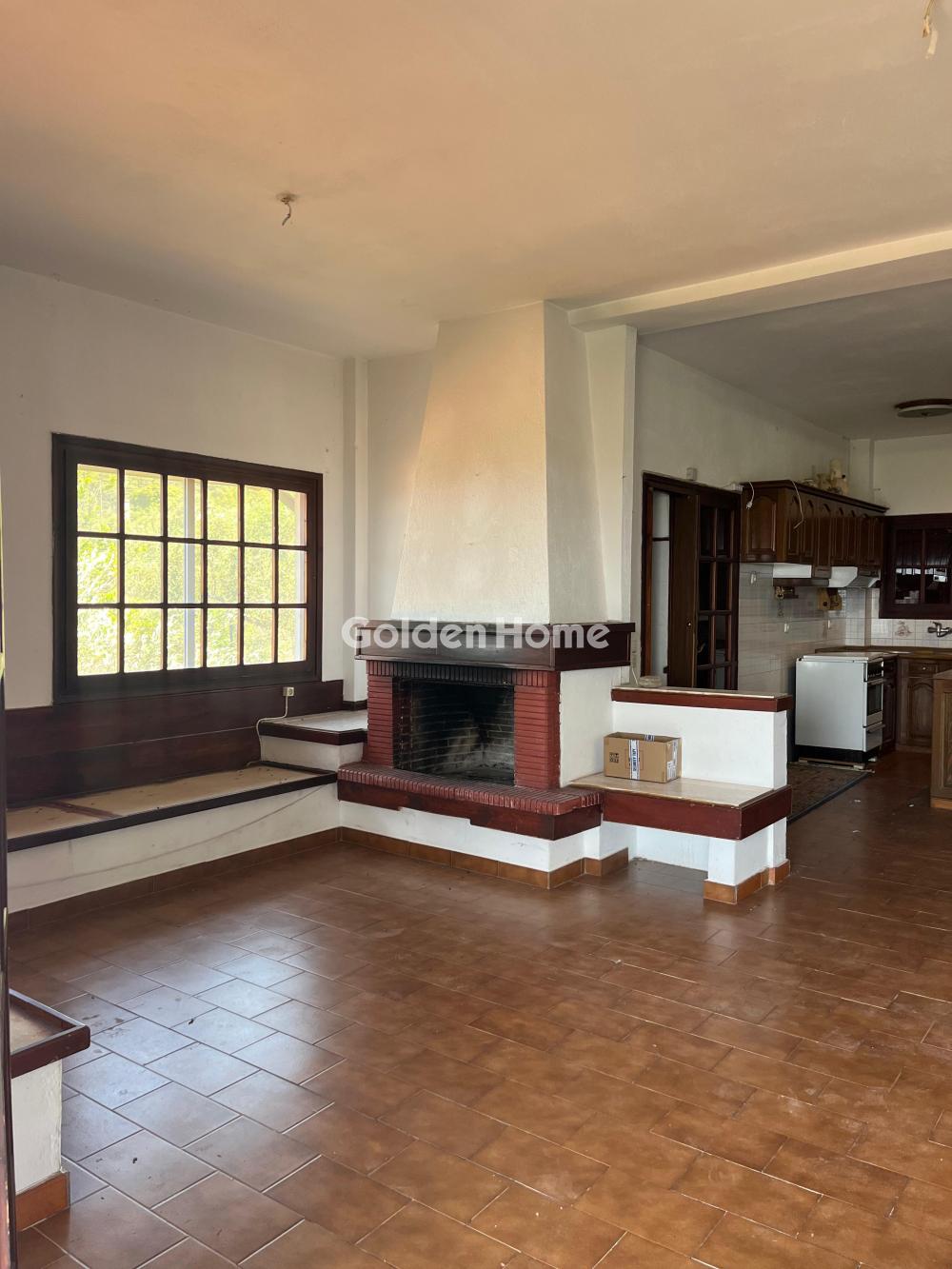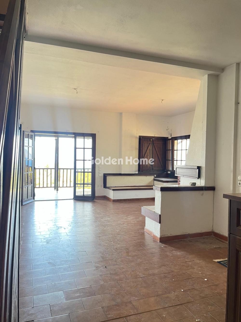 Loutraki, Schinos - Duplex house 420 sqm, on a plot of 4600 sqm, 2 levels: ground floor - 1st floor, construction 1985, kitchen, bathroom, wc, with open parking space, quiet, bright, corner, mountain view, sea view, frontage, storage room 10sqm, fireplace, large terraces, garden 1000sqm, with 50 olive trees, tiled floors, security cameras, south orientation, close to the beach, price negotiable.