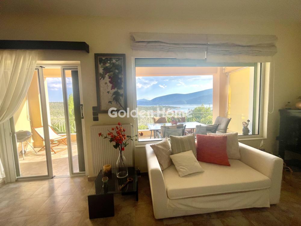 Excellent first-floor apartment in a luxurious residential complex with private gated entrance, covered parking, storage room, and garden. It features 2 bedrooms, 1 bathroom, a fireplace, and comes fully furnished with modern design and top-quality Miele appliances in near-new condition. Located in an amphitheatrical setting just 3 minutes from the village center, it offers panoramic sea and mountain views, privacy, and tranquility. A perfect choice for a permanent or holiday home, just 1.5 hours from Athens. Korfos is a picturesque seaside village in the Corinthia region, known for its calm waters, clean beaches, and traditional tavernas by the sea. With an authentic island-like atmosphere and easy access from Athens, it is an ideal year-round destination for relaxation and natural beauty.