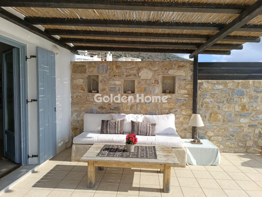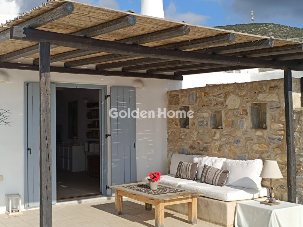In Agkairia, Paros, the sun sets with a song... A delightful surprise awaits you in a unique residence nestled in the southwestern part of Paros. Here, every sunset becomes a breathtaking spectacle. The sky is painted with mesmerizing colors, the silhouettes of the surrounding islands stand like silent guardians, and the vast calmness of the sea brings a serenity that words can hardly capture. This 86 sq.m. home rests at the edge of a peaceful residential complex, offering unobstructed views of Antiparos, Folegandros, Sikinos, and the endless expanse of the Southern Aegean. Built in 2009 in traditional Cycladic style with top-quality materials, the house has been impeccably maintained and partially renovated. Inside, you’ll find a bright and spacious living room with a fully equipped open-plan kitchen, a cozy fireplace, and wide openings that bathe the space in natural light. There are two bedrooms—one of them a master with its own en-suite bathroom, providing stunning views to the sea—plus an additional shared bathroom. At the back, a small veranda serves as a charming outdoor dining area, with direct access to the kitchen. But the true highlight of the home is the expansive 170 sq.m. open terrace—a tranquil haven at the end of a wide corridor. Two built-in sofas define the al fresco dining and lounge areas, all under a large pergola, offering pure relaxation and panoramic views of the Aegean Sea that stretch far beyond the horizon, as well as the possibility to construct a private pool. The complex features a spacious shared swimming pool with panoramic views of the Aegean Sea, located at an appropriate distance from the residence to ensure complete tranquility, while still offering a pleasant amenity for the residents. Its location, architecture, privacy, and rare views make this property ideal for a permanent residence, a holiday home, or an excellent investment for tourism purposes.