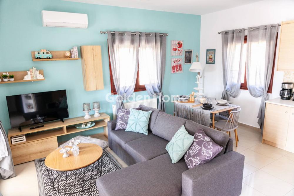 In Platanias, 20km from Chaia, in Modi, a beautiful detached house of 82 sqm is for sale, on a plot of 200sqm, built in 2015, with two bedrooms, a bathroom with a washing machine, an open kitchen with livig room and dining room, fully equipped with the necessary electrical appliances and its usefull objects. The unique residence has a 100 sqm terrace with a swimming pool and views of the mountains and the wider area. It is suitable for both permanent residence and tourist exploitation!