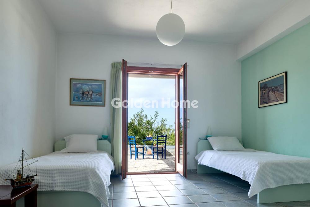 KEA AG.LOUKAS near Ioulida for sale villa-detached house 160 sq m on 3 levels with panoramic sea view and wonderful sunset.The villa covers a total area of 160 s.m. and can accommodate up to 8 guests in 3 levels.The ground floor of the Windmill features a cozy round sitting room with big luminous windows and a fireplace plus a w/c. Adjacent there is a dining area and a fully equipped kitchen. The upper floor features a comfortable bedroom with en-suite bathroom. The lower level encompasses one master bedroom with en-suite bathroom, two bedrooms with double beds, one more bathroom and a useful storeroom. All rooms have immediate access to the stone tiled wide verandas and enjoy panoramic sea views across the azure Aegean Sea.Besides the windmill, what makes this property exceptional is the 12-meter infinite swimming pool and the surrounding area, where much of the summer-life takes place. The villa's exterior is very spacious, with a lot of lounging and sitting areas, wooden pergolas and a BBQ area with a traditional built-in oven. Olive, pomegranate, fig trees and Mediterranean bushes, plenty of bougainvilleas and a plethora of indigenous plants surround the building and the verandas and form beautiful landscapes.Sitting on the slope of a hill and enjoying panoramic views of the Aegean Sea, this villa is located only a 15- minute walk from the capital of Kea, Ioulis. The main purpose of the owners, who were involved in the whole design and construction process, was to create a comfortable and warm home with outstanding outdoor areas. Everything was implemented with respect to the local architecture and the excess use of local stone, and what makes the villa unique is the windmill shape building that dominates the construction.Suitable for both a holiday home and a tourist investment.