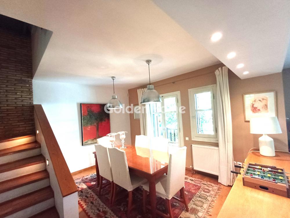 Excellent independent maisonette / detached house with a lush private garden of 100 sq.m., located in a very quiet part of Kifisia, just a short distance from main roads and only a 10’’ walk from the suburban train station. The spacious reception area is arranged on two levels: at the entrance level, there is a living room with a fireplace and views of the green garden, along with large built-in bookcases next to the fireplace. Just three steps above, you’ll find the dining area and a large kitchen with a window and direct access to the garden. On the second level, there is a very spacious master bedroom with an open wardrobe area, a large bright bathroom, and a veranda, as well as a second bedroom, a smaller study, and an additional bathroom. In the attic (with normal ceiling height), there is a cozy sleeping corner with a view of the garden and a work area overlooking Kifisia. At garden level, with its own independent entrance, there is an open-plan living area with a bright hall, a large bathroom, and auxiliary spaces (storage room, oil heating boiler). A versatile home that can accommodate a large family and also be partially used as a professional workspace. A property that exudes the charm and elegance of old Kifisia, built in 2002 with modern, high-quality materials! Definitely worth a visit.