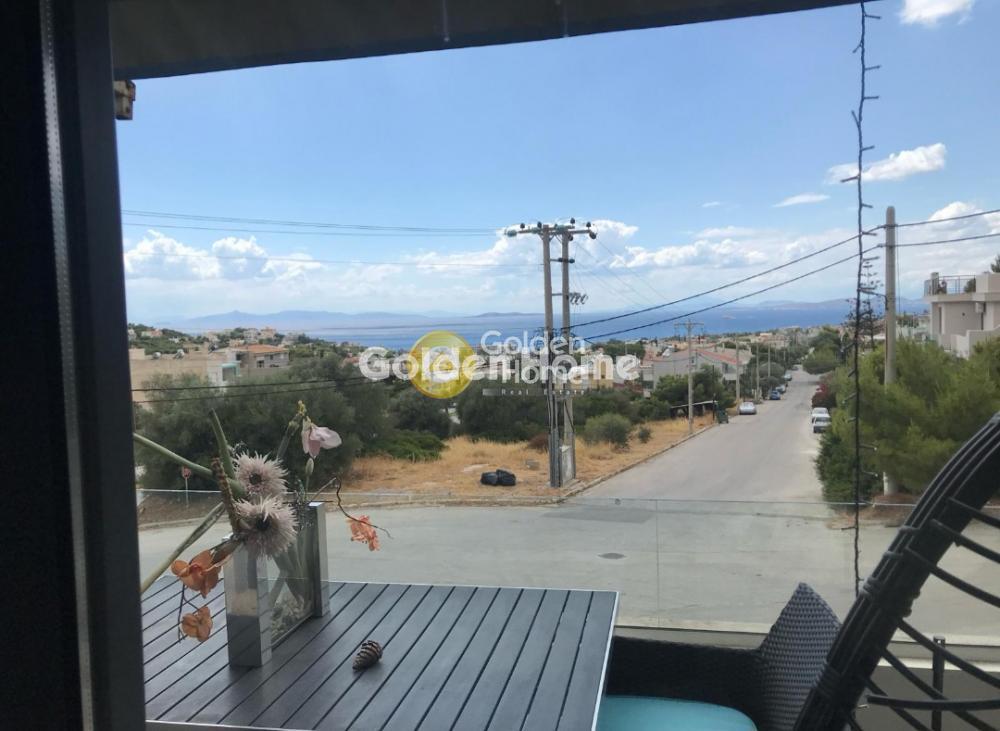 Furnished 75 sq.m. whole-floor apartment for rent in Saronida for the summer season (June, July, August). The property features 2 bedrooms, an energy-efficient fireplace, air conditioning, and infrared heating panels. It is located near the Saronida market and local beaches, offering unobstructed sea views. The price includes access to a shared swimming pool and an underground parking space.