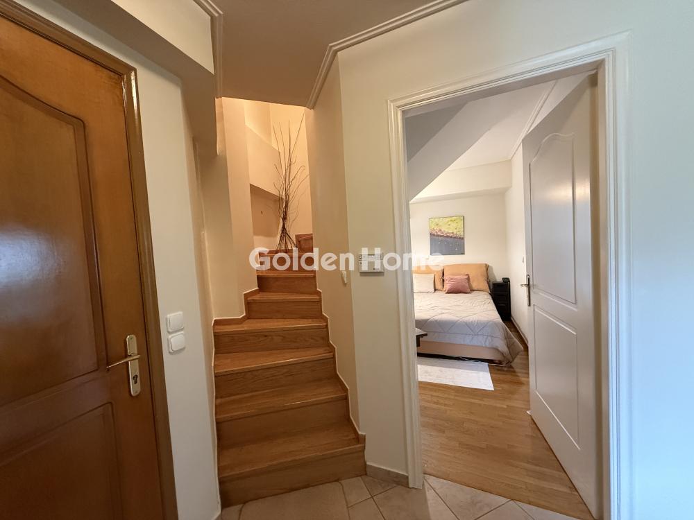 For sale: an excellent 97 sq.m. maisonette with 3 bedrooms, located in the Melissia area. The property is situated in a prime location of outstanding natural beauty, in a quiet neighborhood with easy access to main roads, close to shops and public transportation. It is developed over the 1st and 2nd floors, is dual-aspect and very bright, with a modern and functional layout. It features an open-plan kitchen–living area, a fireplace, a large balcony, 3 bedrooms with spacious built-in wardrobes, a roomy bathroom, and an additional WC with a shower. The property also includes aluminum window frames with double glazing, insect screens, awnings, a solar water heater installation, and a fully installed alarm system.