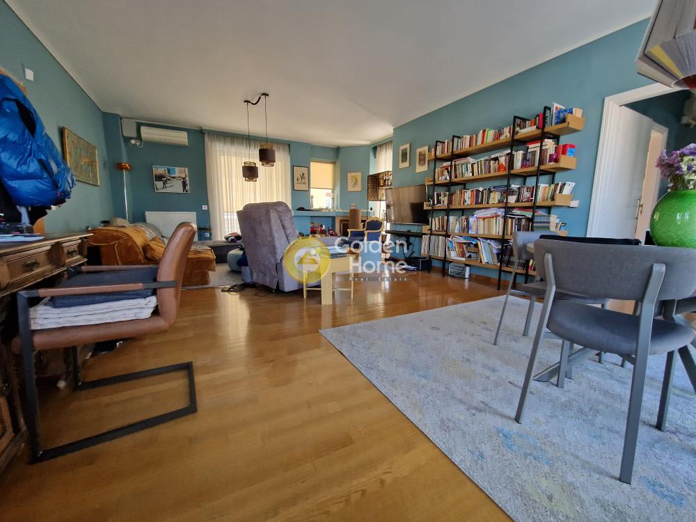 luxurious apartment 90 sq m. bright, airy, in the green, with a large storage room outside the house and an open garage. fireplace, large terrace, autonomous oil heating. solar, built-in kitchen, refrigerator, washing machine. one and a half kilometers from Amaroussi metro station. Also sold together with a 36 sq m apartment code 483265.