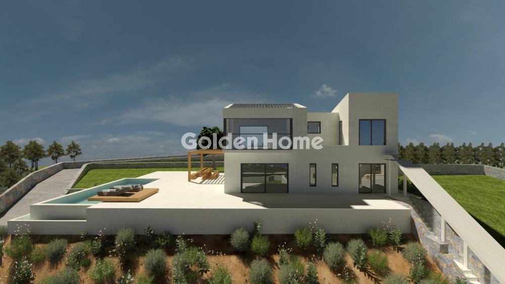 Luxury Villa with Private Pool & Sea View | Skoteino, Crete For sale: Modern 110 m² maisonette on a private 1,100 m² plot in Skoteino village, just 5 minutes from Hersonissos and the sea. The villa is spread over two levels and offers 3 bedrooms with fitted wardrobes and en suite bathrooms, an open-plan kitchen and dining area, a cozy living room with fireplace, and a utility room. Outdoors, the property features a private swimming pool, pergola-covered BBQ area, landscaped garden with lawn and trees, spacious verandas, and stunning views of the sea and the Lasithi mountains. Ample parking is available on both sides of the house. Additional features: central heating & cooling with heat pump, solar water heater, internet connection, and alarm system with security cameras. Easy access via a 500 m unpaved road from the main route. Both the current and new international airports are within a 15-minute drive.