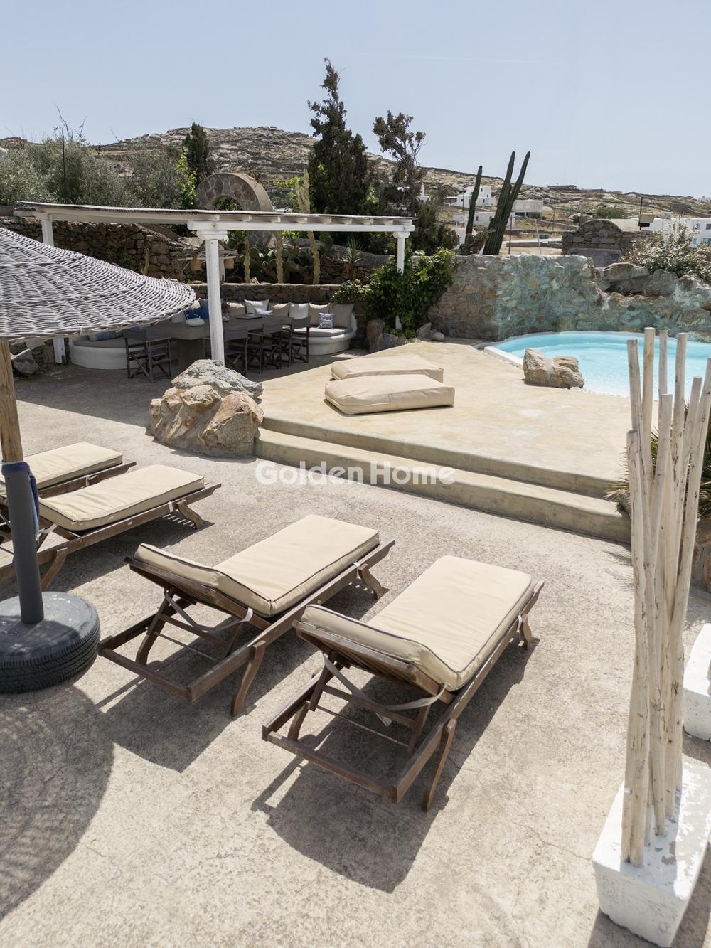The complex is situated just a 5 minute drive away from Mykonos Town some meters next to the main street that practically connects the entire island. Its privileged location combines smooth accessibility to all the Mykonian sights and attractions, the vibrant nightlife and the trendy beaches . Within small distance guests may access the famous beaches of Ftelia and Panormos and you can also reach Ano Mera beaches, including Kalo Livadi, Kalafatis, Lia and Elia. It consists of -one villa with 3 bedrooms, 3 bathrooms and large living room area with a modern kitchen. The spacious surroundings are ideal for relaxing under the Greek sun next to the freshly watered private swimming pool during the daytime, while during the nighttime is the ideal spot for a bbq night or a drink, during the warm Mykonian nights. Furthermore, there is also an interior Jacuzzi. - one studio with a spacious private patio - one apartment with one bedroom with sitting-dining area , fully equipped kitchen and a big terrace and a cozy shared mini pool/jacuzzi with a lounge - 2 bedroom apartments with private terrace and a cozy shared mini pool/jacuzzi with a lounge which share a cozy mini pool/jacuzzi with a lounge The complex offers a great opportunity for buyers seeking an investment property in Mykonos