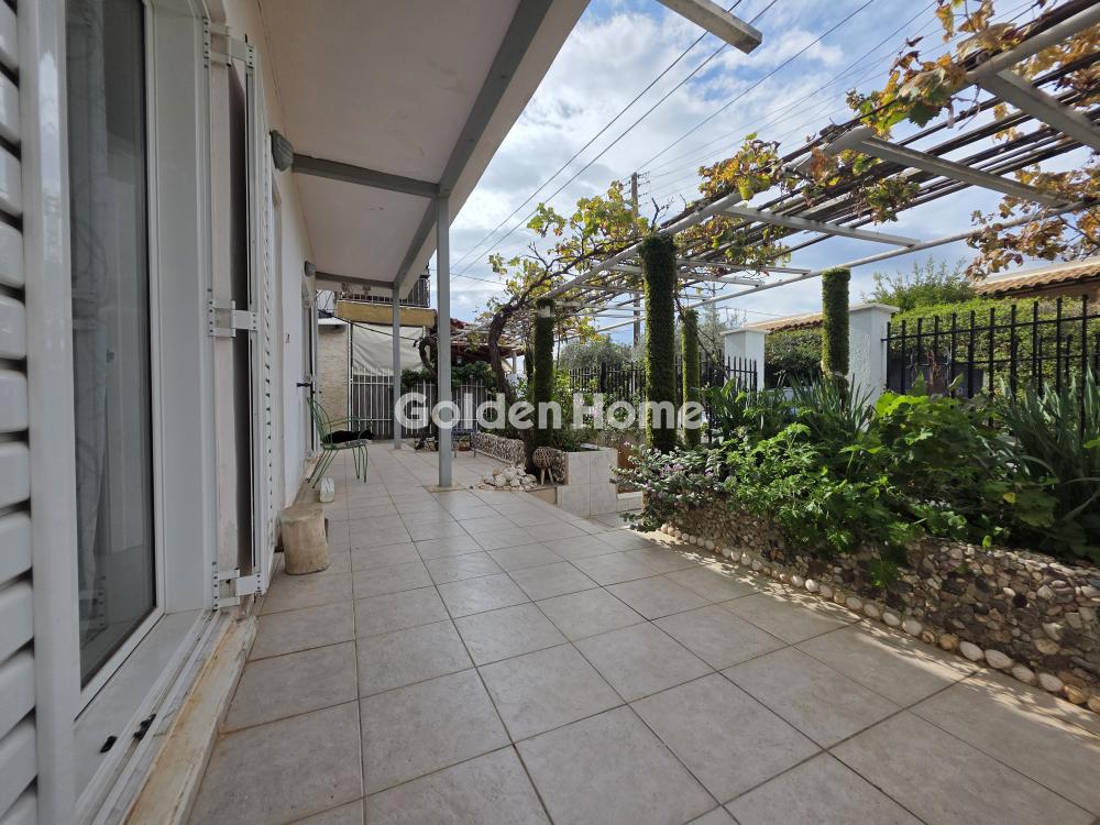 Beautiful 83 sq.m. detached house in Vari, in the Cheroma area, on a 400 sq.m. plot outside the town plan in a quiet location near the market and main roads. It consists of a raised ground floor apartment of 83 sq.m. and a 25 sq.m. playroom (open space) in the semi-basement with a separate entrance from the private garden, which is approximately 130 sq.m., with fruit trees and parking spaces. Entering the ground floor, I come across the living area combined with the kitchen, which has plenty of storage space and is fully functional. Next, there are 2 bedrooms with their wardrobes and an additional room - office. It is a property for families seeking peace in a developing area.