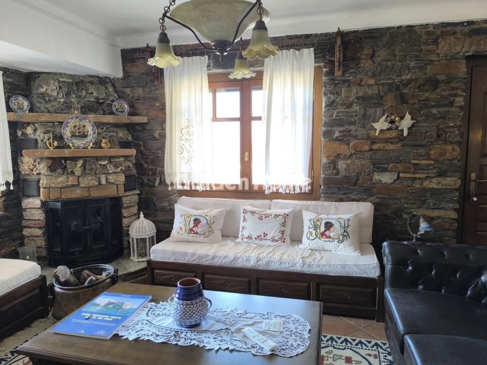 KEA KOUNDOUROS for sale excellent villa 190 meters from the beautiful beach of Koundouros. The villa is stone-built with a special architecture fully furnished with handmade traditional furniture. 3 bedrooms (one master), 2 bathrooms. 1 wc, large fully equipped kitchen, 60sqm living room with fireplace. Huge verandas with sitting areas, large stone bbq, 60sqm swimming pool, . Lush garden (lawn, large trees and plants) 1,800sqm. 2 storage rooms, covered parking, 2 water tanks, drilling and underground automatic irrigation.