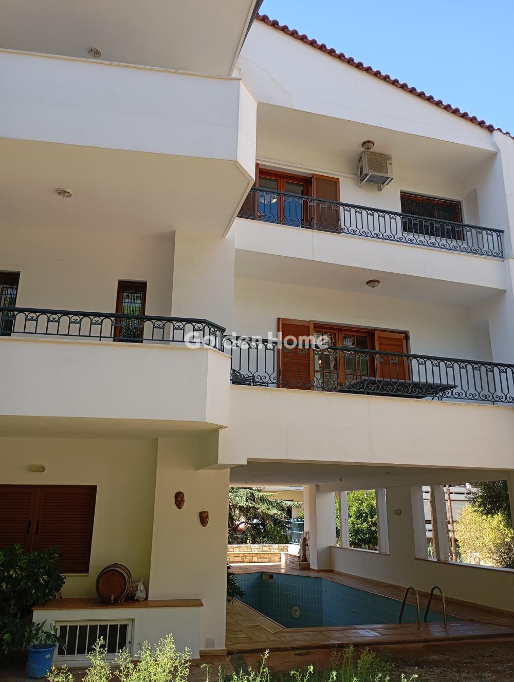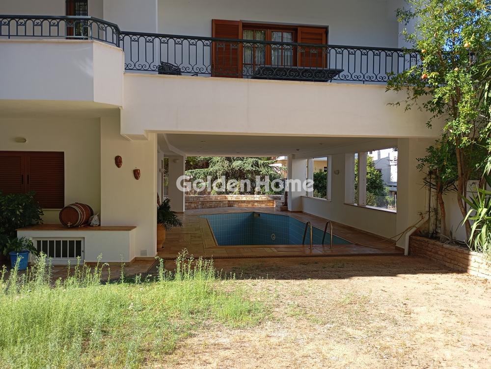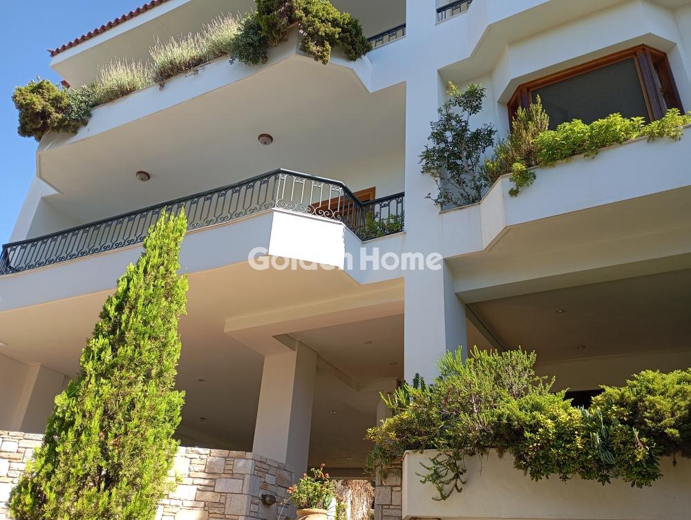 A luxurious 403 sq.m. villa with a private pool, garden, and panoramic sea view. It features 4 bedrooms (2 master), 3 bathrooms, a WC, a spacious kitchen, a living room with a fireplace, an attic, and a rooftop terrace. The property includes an independent studio on the ground floor, an internal elevator, and a closed parking area.