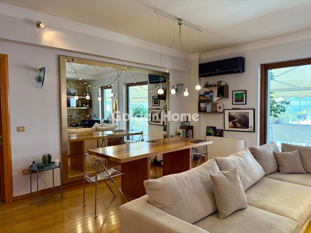 Available for rent from 01/10/25: luxurious 125 sq.m. apartment, built in 2005, located on the 2nd floor with elevator. The space features underfloor cooling and heating, brand-new air conditioners (2025) in all rooms, a fireplace, alarm system, and security door. The apartment is fully furnished with handcrafted furniture and high-quality built-in Miele appliances (kitchen with Corian countertop, oven, microwave, coffee machine, touch ceramic hobs, dishwasher, refrigerator). It includes a large living-dining area, kitchen, WC, spacious bathroom with double sinks and hydromassage (both standing and lying), and two bedrooms – the master with a king-size bed and large wardrobes, and the second with a desk. The floors are oak with stone and decorative finishes, while lighting is dimmable LED. The apartment also has large storage areas (one internal and one external), electric awnings, two large balconies (front and back) with built-in barbecue and complete outdoor furnishing. It is offered with all appliances, sofas, bed, dining table, desk, and the balcony furniture. Parking space available for rent.