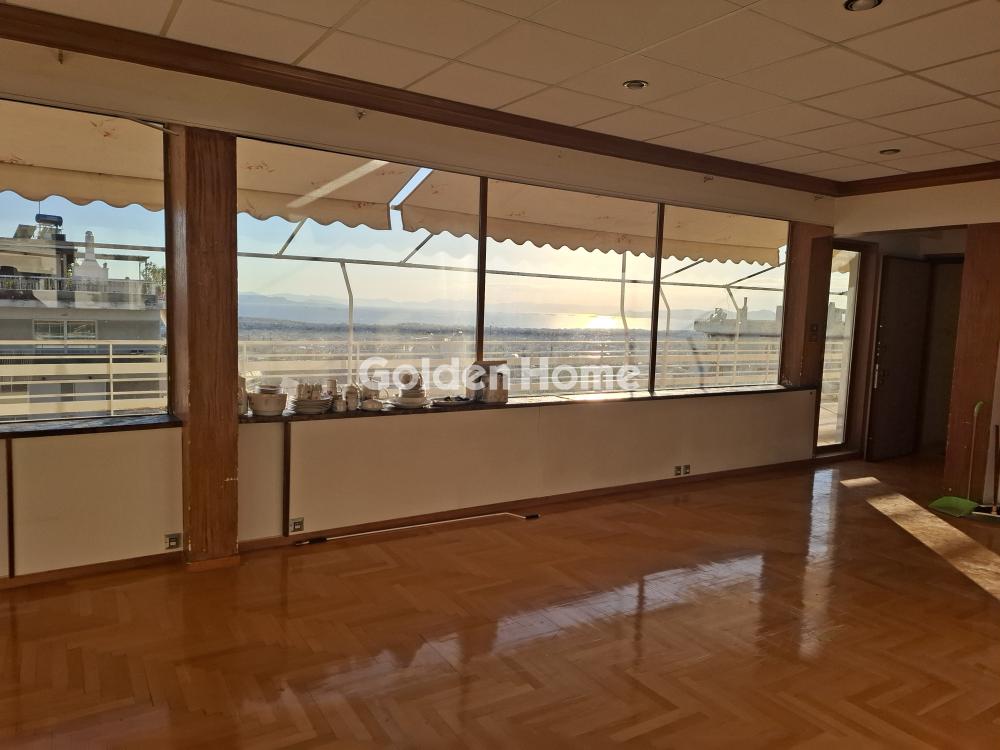 5th floor penthouse of 140 sq m in Ano Ilioupoli with unlimited sea and mountain views, 60 sq m verandas, 2 bedrooms (one master), large separate kitchen, open plan living room with dining area and wonderful views, as well as an additional space of 30 sq m that can be configured as an office, gym, play room or dress room. It has a security door, video intercom, solar water heater, awnings, marble and wooden floors, while it is particularly bright throughout the day. It is located in a quiet neighborhood, very close to schools, transport and shopping, and provides the opportunity to