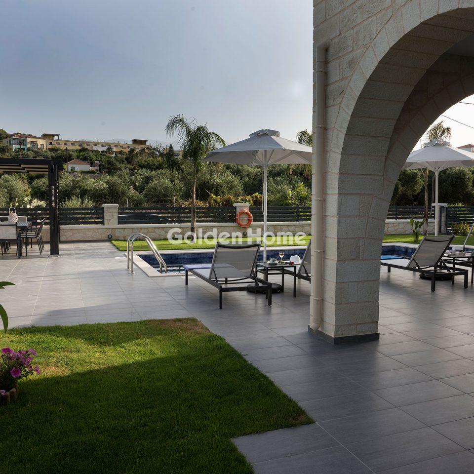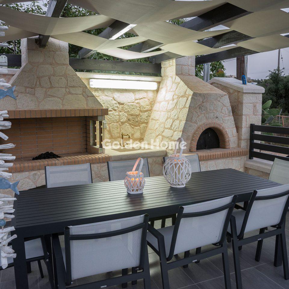 Luxury Villa with Pool in Almyrida, Chania In the heart of Almyrida, just a few steps from the sandy beach, lies a residence that blends elegance, comfort and authentic Cretan charm. This stylish two-storey villa of 160 sq.m., built on a 550 sq.m. plot, offers refined architecture and an atmosphere of relaxation and serenity. Inside, you will find four bedrooms with private balconies, three bathrooms and a hammam. The bright, earthy tones of the interior design create a warm and inviting ambience. The spacious living room with fireplace and the fully equipped kitchen open directly to the lush garden and private pool of 32 sq.m., creating a seamless connection between indoor and outdoor living. The outdoor areas are designed for memorable moments: stone walls, palm trees, a well-kept lawn and a traditional stone BBQ with a wood-fired oven set the perfect scene for evenings under the starry Cretan sky. Modern comforts such as air conditioning, solar water heating, satellite TV and Wi-Fi ensure convenience, while a private parking space and basement storage room add practicality. With stunning views over the White Mountains and the blue waters of the Cretan Sea, this villa is a true paradise — whether as a private retreat or a high-return investment in the booming tourism market of Crete.