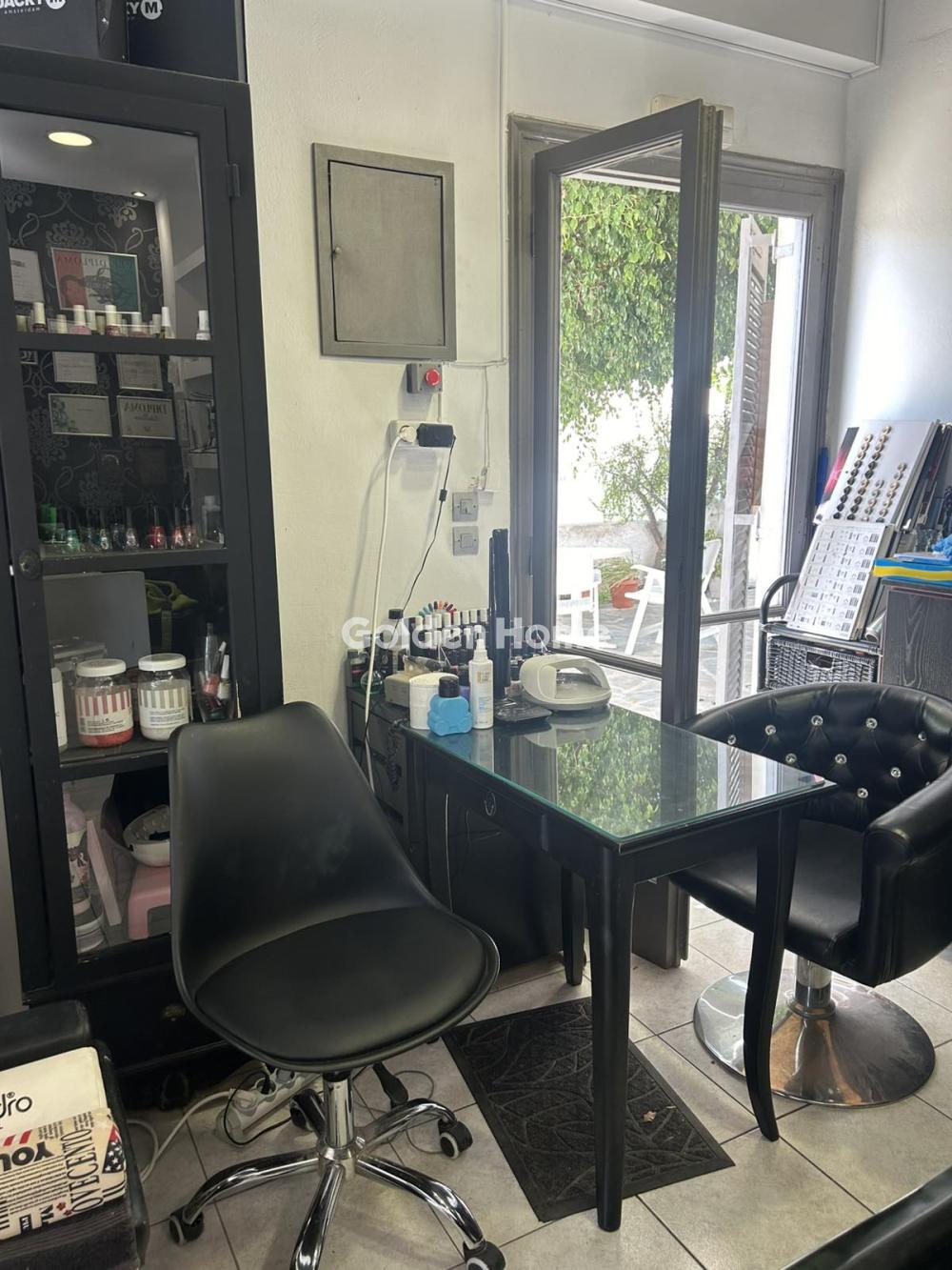 Santorini Kamari, hair salon business for sale, ground floor shop 50sqm, fully equipped, with a large clientele, frontage, corner and bright, in a very central point of the settlement, rent 800e.
