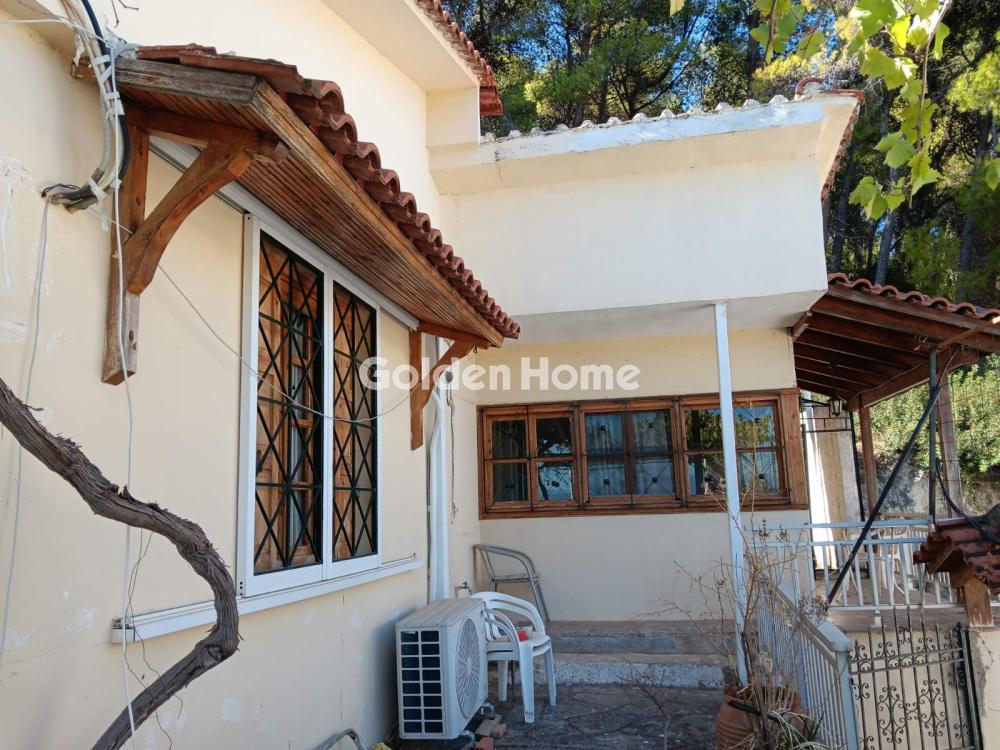 For Sale – Detached House in Taxiarchon Settlement, Kalamos Detached house 75 sq.m. ground floor with 20 sq.m. attic, on a 700 sq.m. plot, only 150 meters from the beach. The property features: 3 bedrooms (2 on the ground floor + 1 master in the attic with en-suite bathroom) 2 bathrooms (1 on the ground floor + 1 in the attic) Fireplace in the living room Air conditioning units Large veranda with panoramic views of the sea, Evia, and the forest Oil heating system (burner) Nearly 30 sq.m. of auxiliary/storage spaces Highlights: Walking distance to the beach (150 m) Peaceful area with clean air and natural surroundings Ideal for permanent residence or holiday home