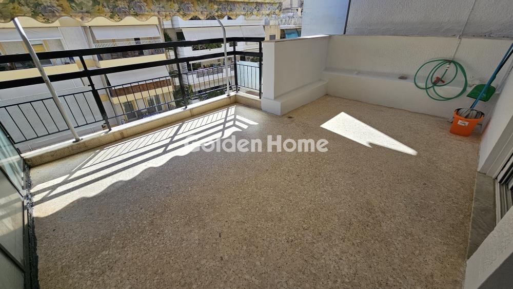 Privileged 5th floor penthouse in the heart of Nea Smyrni, just 50 meters from Estia Park and 200 meters from Nea Smyrni Square. Frontage, bright, area 75 sq m. with two bedrooms, one large double and one single, large living room - dining room - sitting room, large frontage terrace with side view. Construction '81 with renovation in 2022, aluminum, screens, security door, awnings. Small balcony in the single room, bathroom with window, airy and bright, natural gas. Complete renovation of roof insulation 2020.