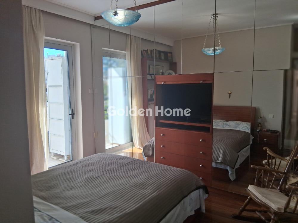 3rd-floor penthouse apartment in Nea Erythraia, built in 1980 and renovated in 2019, located in a key area close to the market and public transportation. It features a living room with a fireplace, unified with the dining area, and access to a large veranda with unobstructed views of Mount Parnitha. The independent kitchen is bright and overlooks the same veranda as the living room. There are 4 bedrooms with wardrobes and a shared balcony with views of Mount Penteli, 1 WC with a shower, and 1 bathroom with a bathtub. The living room has marble flooring, while the bedrooms have oak floors. The apartment includes aluminum window frames, double thermal-insulated glazing, and a solar water heater. Additional features: autonomous natural gas boiler, elevator, security door, in-house storage room, and 1 pilotis parking space.