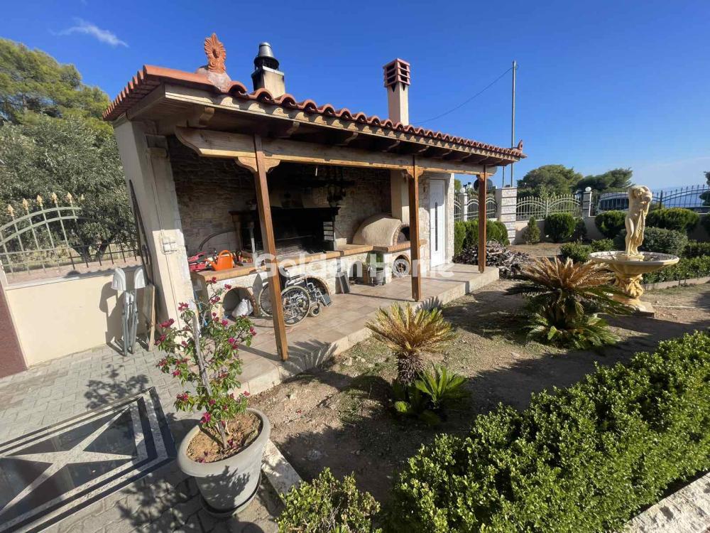 Detached house with a total area of 195sqm on a corner plot of 900sqm with barbecue area, garden and unlimited sea and mountain views on all sides. Luxurious construction. Sold furnished with all household appliances.
