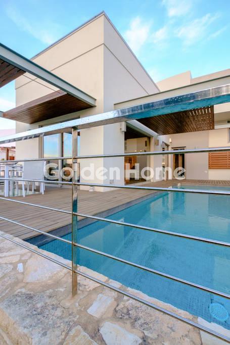 - Luxury Villa with Pool & Garden in Agioi Apostoloi, Chania Located in one of the most sought-after and tranquil areas of Chania, just a 10-minute walk from the beach, this stunning three-level villa offers 300 sq.m. of living space plus 50 sq.m. of auxiliary areas, set on a private plot with a landscaped garden and private swimming pool. This property is ideal both as a primary residence and as a high-yield investment, combining comfort, aesthetics, and an exceptional location. -Location Agioi Apostoloi is a coastal suburb of Chania known for its beautiful beaches, green parks, and peaceful atmosphere. The villa is just steps away from the sea, offering easy access to swimming, walking paths, and water activities. At the same time, it’s close to schools, supermarkets, pharmacies, and public transport, making it perfect for families or short-term rental use. -Property Description Built in 2011, the villa features modern materials and thoughtful architecture that blends functionality with elegance. It consists of three levels: - Basement The basement includes two bedrooms, one of which is a master suite with a private bathroom, offering privacy and comfort. There's also a spacious playroom, ideal for children, a home cinema, or a gym. The 50 sq.m. of auxiliary spaces include storage rooms, a laundry area, and technical installations. - Ground Floor The ground floor serves as the main living and entertaining area. The living room is generously sized, with large openings that offer views of the garden and pool, creating a bright and airy atmosphere. The kitchen is fully equipped with modern appliances and ample cabinetry. Adjacent to the kitchen is the dining area, perfect for family meals or hosting guests. A guest WC adds convenience and privacy. - First Floor The first floor hosts three bedrooms, one of which is a master suite with its own bathroom, while the other two share an additional bathroom. All bedrooms feature built-in wardrobes, large windows, and access to balconies overlooking the garden or surrounding area. The layout ensures a perfect balance between private and shared spaces. - Amenities & Features • Total bathrooms: 4 + 1 guest WC • Energy class: C • Heating: Autonomous • Air conditioning: In all rooms • Windows: Aluminum frames with double glazing • Floors: High-quality tile and wood • Security: Alarm system, cameras, reinforced door • Swimming pool: Private, with filtration system and lighting • Garden: Landscaped with plants, lawn, and outdoor seating areas - Outdoor Spaces The exterior of the property is fully landscaped, featuring a lush garden that offers shade, color, and tranquility. The private pool is the centerpiece of the yard—perfect for summer relaxation or social gatherings. There’s also space for a barbecue, outdoor dining, and lounge areas, all within a fenced plot that ensures complete privacy. - Location Highlights • 10-minute walk to the beach • Quiet neighborhood with low-density housing • Access to parks and nature trails • Close to schools, shops, and services • Only 10 minutes by car to Chania city center - Investment Potential This property presents an excellent investment opportunity, whether for tourist rental via platforms like Airbnb or Booking, or for long-term leasing to families or professionals. The area of Agioi Apostoloi shows consistent demand and strong returns, while proximity to the beach and city center enhances its long-term value. - Asking Price The asking price for this unique property is €870,000, reflecting its build quality, location, and amenities. It’s a rare opportunity in the Chania market, with immediate potential for use and long-term appreciation. - Contact For more information, photos, or to schedule a viewing, please contact us. Visits are available by appointment, with full presentation of the property and its features. -Section 1: Exterior & Architecture The exterior of the residence exudes elegance, balance, and contemporary sophistication. Its architectural design is based on clean geometric lines, natural materials, and expansive glass surfaces that seamlessly connect the interior with the surrounding environment. Positioned to maximize views, the property offers open vistas toward the sea and greenery, while the rooftop and terraces act as natural observatories. - Section 2: Pool & Garden The outdoor area is a true highlight, designed for relaxation and entertaining. The private pool, with its clean lines and wooden deck, evokes the ambiance of a luxury resort. The landscaped garden features lush greenery and seating areas, creating a serene natural setting ideal for quiet moments or social gatherings. - Section 3: Living Room & Lounge The living room is the heart of the home—bright, spacious, and welcoming. With large openings to the garden and pool, it offers a sense of openness and connection to nature. Neutral tones, modern artwork, and comfortable furnishings blend style with warmth. -Section 4: Kitchen & Dining Area The kitchen is fully equipped with modern built-in appliances and designed for both functionality and aesthetics. Clean lines, natural tones, and thoughtful lighting create a pleasant and efficient cooking environment. The dining area, overlooking the outdoor space, is ideal for family meals or hosting guests. -Section 5: Bedrooms The bedrooms offer comfort, privacy, and refined design. The master suites feature en-suite bathrooms and access to balconies, while the secondary bedrooms are bright and spacious. Decorated in soft, neutral tones and bathed in natural light, each room provides a peaceful retreat. -Section 6: Bathrooms & Guest WC The bathrooms are defined by minimalist design and high-quality materials. Stone basins, wooden surfaces, and modern fixtures create spaces that are both functional and elegant. The guest WC maintains the same aesthetic consistency and discreet charm. - Section 7: Office & Utility Spaces The property includes dedicated