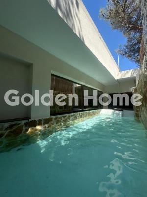 Artemida - Loutsa, detached house for rent 140sqm on a plot of 245sqm, corner, total renovation 2024, 3 bedrooms, 2 master bedrooms, 3 bathrooms with hydromassage columns, kitchen, living room, dining room, (the 1 master bedroom, the kitchen and the dining room-living room with a view of the pool), energy fireplace, electric underfloor heating, electric roller shutters, screens, security door, furnished with televisions, 3 double beds, corner sofa, living room table, dining room, garden furniture, equipped with electrical appliances, refrigerator, wardrobe, dishwasher, built-in kitchen and oven, induction hobs, washer-dryer, solar, thermal insulation - soundproofing, alarm, cameras, radar, 4 air conditioners (in all rooms and living room), 3 ceiling fans, 10sqm storage room, covered open parking with electric garage door, large garden around, outdoor shower, 140sqm terrace with pergola, unlimited view and partial sea view, swimming pool. The detached house is located very close to the sea and the beach, shops and the airport.