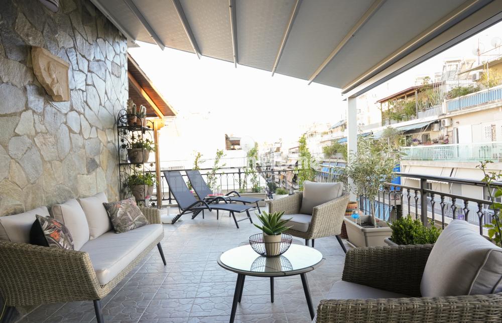 80m² 2-bedroom penthouse apartment with unobstructed views of the Acropolis in the best location in Neos Kosmos. Luxuriously renovated penthouse apartment for sale in a bright and privileged location, with unobstructed views of the Acropolis. Located in a 10-apartment building, close to the market and public transport (buses, metro, tram). Just 500m from the metro. Property Features Balcony area: 65 sq.m., large, with impressive views Bedrooms: 2, with access to balconies Living room: Large, with balcony and open view Kitchen: Separate, 1 Bathroom: With luxury sanitary ware Furnished: Yes, luxuriously Heating: Heat pump Window frames: Aluminum Floors: Tiles and parquet Elevator: Yes Storage: In the house Awnings: Electric Security door: Yes Bright, front-facing Penthouse with impressive panoramic views Excellent access to transportation and points of interest