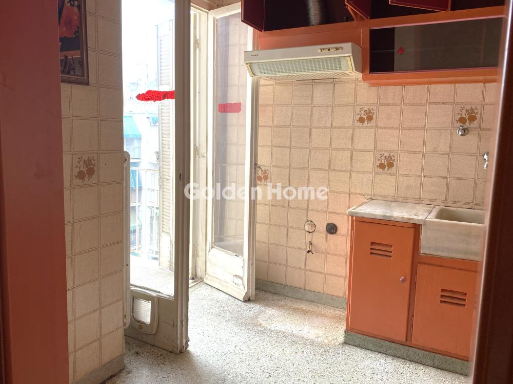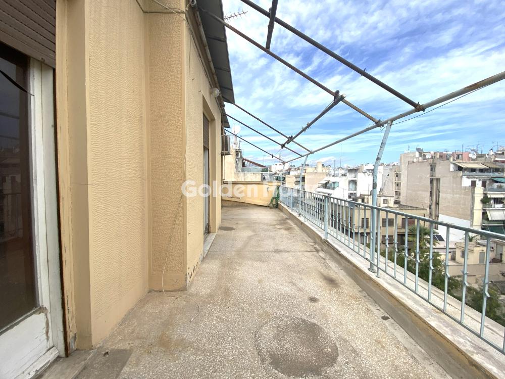 Bright and airy sixth floor penthouse, with side view of the Acropolis. The apartment consists of a spacious living room, a large balcony of 24sqm, an independent kitchen with a small balcony, a bedroom with another small balcony, a large bathroom with a bathtub and a small room that can be used for the washing machine or as a storage room. There is also a storage room in the basement. It is a property that needs renovation. Another bedroom can be easily created, either on one side of the living room or by changing the position of the kitchen. Central heating, with natural gas. The location of the apartment is next to the church of Agios Panteleimonas and the market and just a 10-minute walk from ATTIKI metro station.
