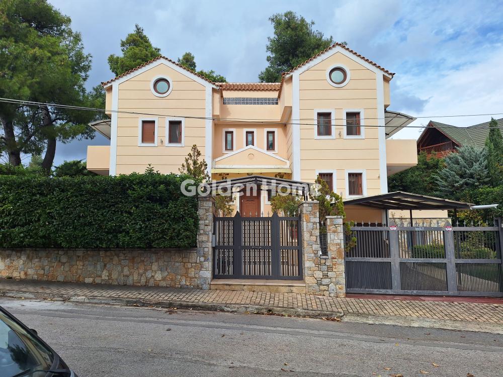 An exceptional detached residence in the prestigious Prokonisos area of Stamata, near the district of Efxinos Pontos. Situated on a corner plot with a south–southwest orientation, the home enjoys sunlight throughout the day and faces a park and a central square. Featuring classic architecture—one of the finest examples in this elegant neighborhood—the property offers abundant natural light through multiple openings and tasteful custom touches by the owner. Ground Floor: To the right of the entrance hall is the dining room; behind it, the kitchen; and on the opposite side a bright living room with a fireplace. Upper Floors & Layout: An elevator serves all levels. • First Floor: One double bedroom, two smaller children’s rooms, and a large bathroom. • Attic: A cozy living area, an office space, and a guest bedroom with a double bed—ideal as a guest suite. Lower Level (bright semi-basement): A playroom, a sitting area with a fireplace, a dining space, a secondary kitchen, a laundry room, a maid’s room, the elevator’s engine room, an oil burner, and a 16 kVA generator (available at an additional cost). There is also a garage with an electric door and an easy, wide ramp. Location: The bus stop is just 20 m away. The main avenue offers quick access toward Agios Stefanos and the Athens–Lamia National Highway, as well as toward Stamata, Drosia, Ekali, and Kifisia. Very close to the residence is one of the best private schools in Attica, Othisi, while Arsakeio is also within convenient distance. A perfect home for a family with two children.